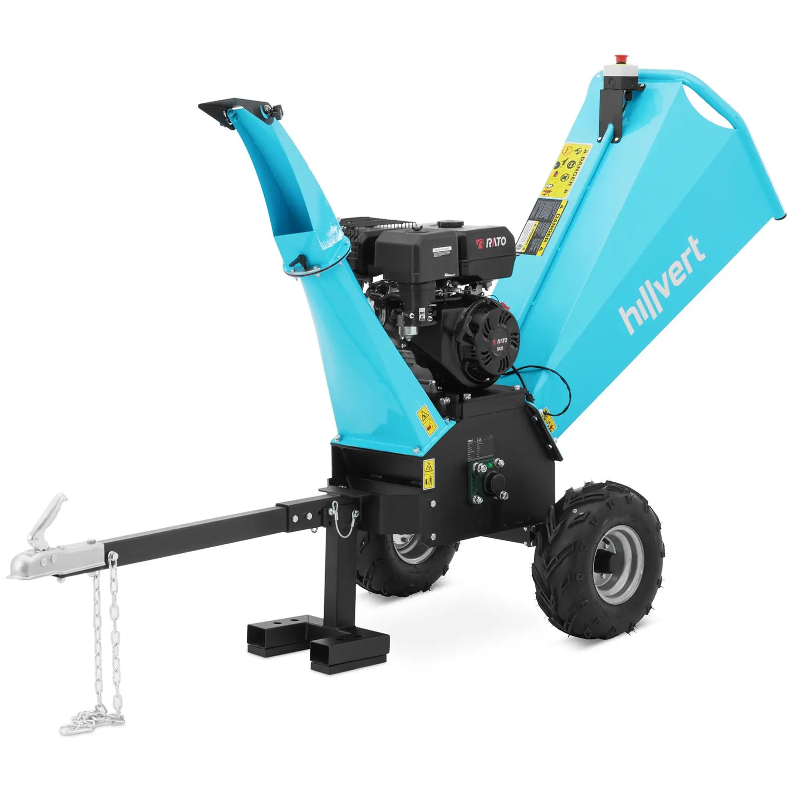 Tocătorul de grădină mobil cu roți mari și cuplare la remorcă