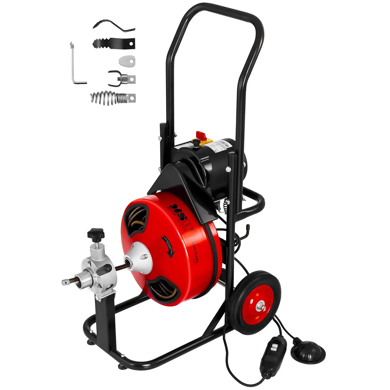 Motorul rotește spirala de curățare a țevilor în două direcții, în sensul acelor de ceasornic sau în sens invers acelor de ceasornic, producând o acționare electrică puternică de 390 W. Sensul de rotație este setat cu un comutator de pe motor printr-o pârghie pe alimentarea în spirală, apoi se determină dacă spirala este introdusă sau extinsă. Pentru a asigura o funcționare sigură chiar și în medii umede, spirala este extinsă sau retrasă cu un comutator cu picior acţionat cu aer fără contact electric.
