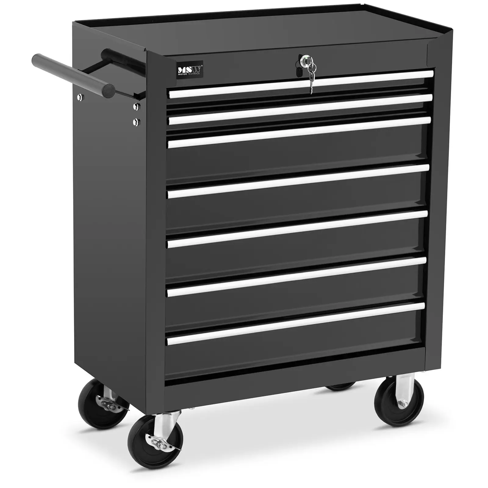 Da, acest cărucior de scule care poate fi încuiat vine cu două chei cu care puteți încuia încuietoarea stabilă.