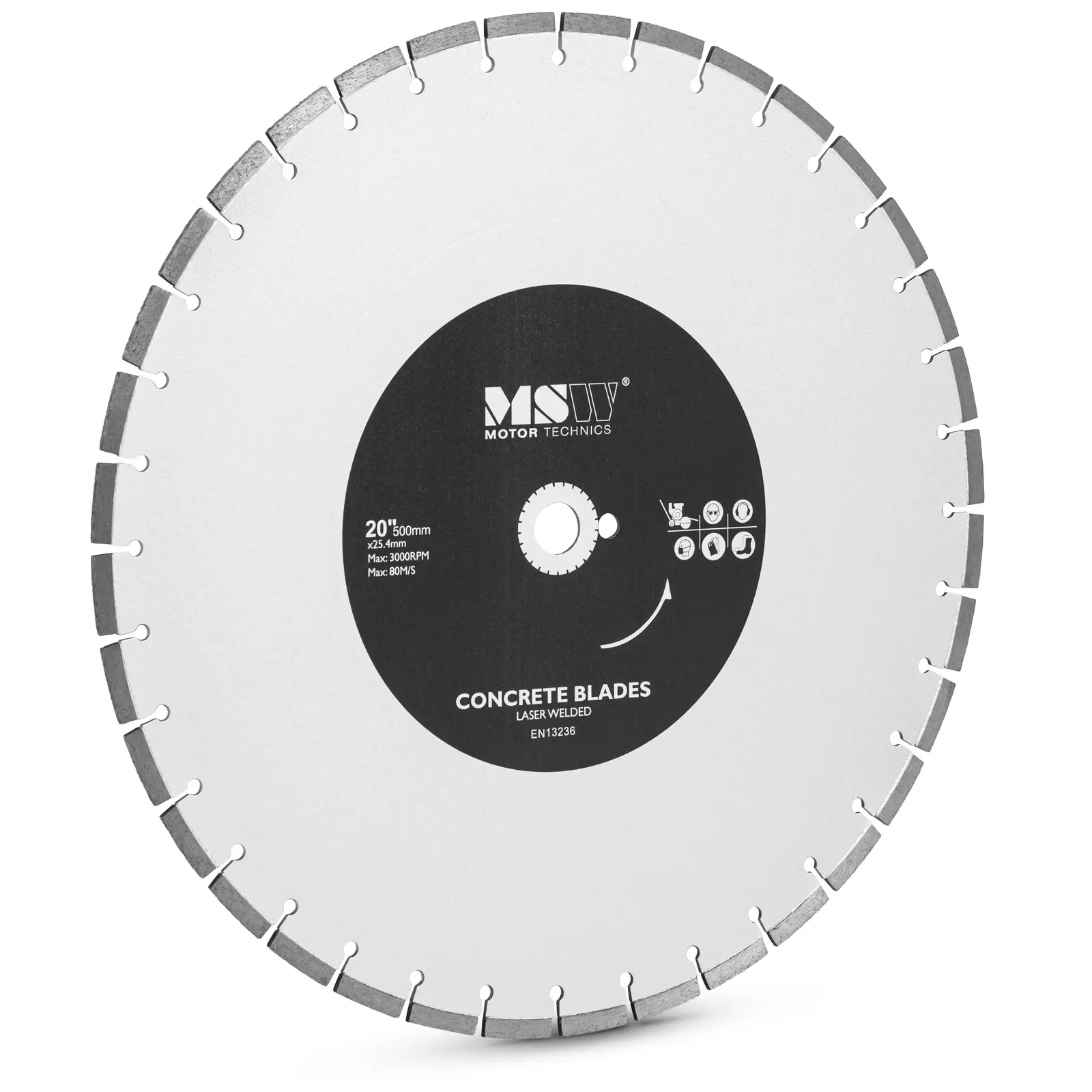 Die Diamanttrennscheibe besteht aus festem Stahl und garantiert dadurch eine besonders hohe Stabilität. Mit einem Durchmesser von 500 mm und einem Kernloch mit 25,4 mm ist sie die ideale Ersatzscheibe für Boden-, Stein- und Kreissägen mit den entsprechenden Parametern sowie für die MSW-Produkte: