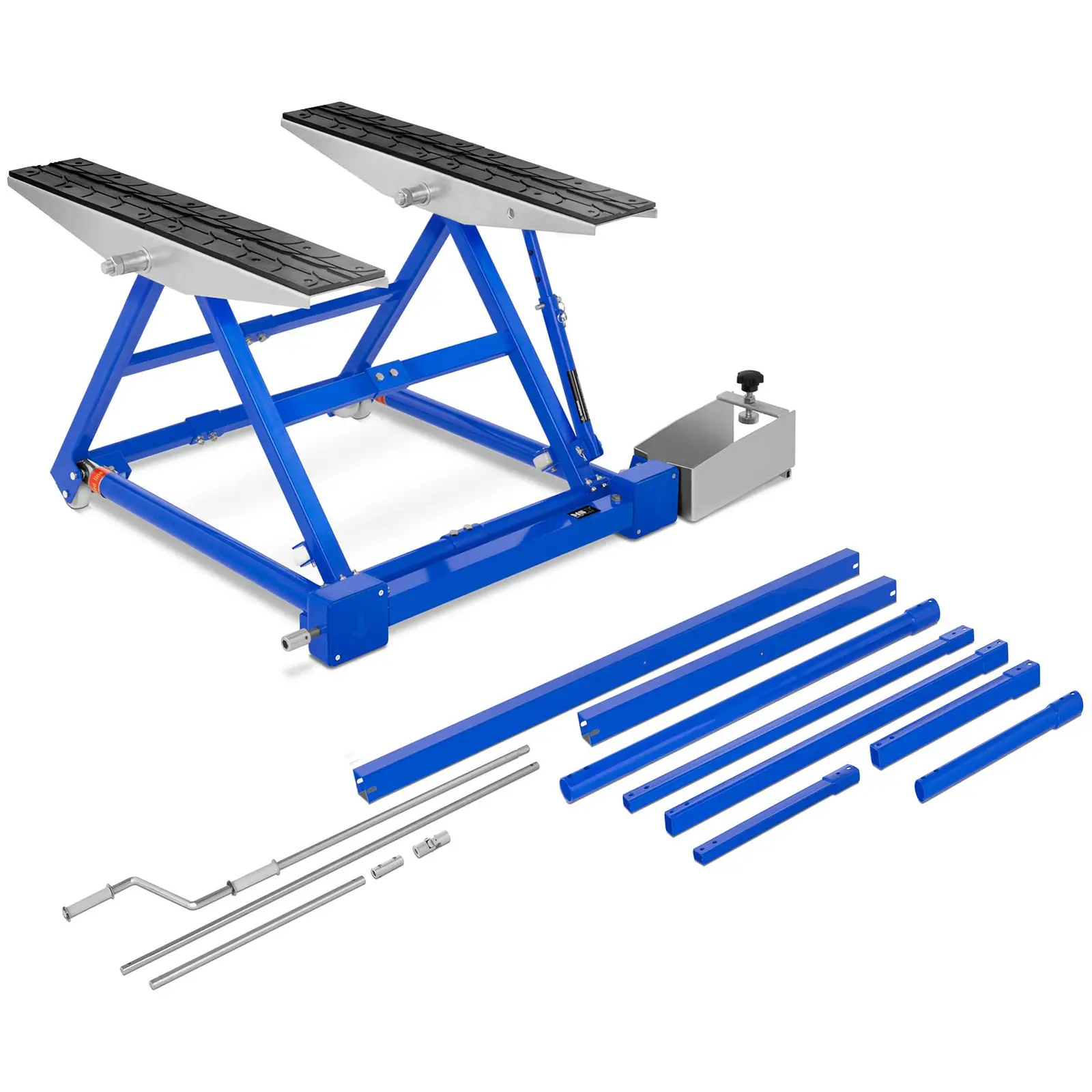 Liftătorul foarfecă MSW_HB-1500 este ajutorul perfect pentru ridicarea vehiculelor pe perioade scurte în atelierele auto. Ridicatorul cu foarfecă este rulat sub vehicul și ridicat cu ajutorul mânerului mecanic, fără utilizarea aerului comprimat sau a energiei electrice. Apoi puteți înclina pur și simplu vehiculul înainte sau înapoi în poziția dorită. Aveți opțiunea fie de a înclina vehiculul, fie de a ridica toate cele patru roți în același timp. Lungimea poate fi setată la trei poziții. Acest lucru facilitează mult îndepărtarea, instalarea și repararea pieselor și vă oferă mai multă flexibilitate. Ascensoarele portabile foarfece de la MSW sunt potrivite optim pentru uz industrial și privat.