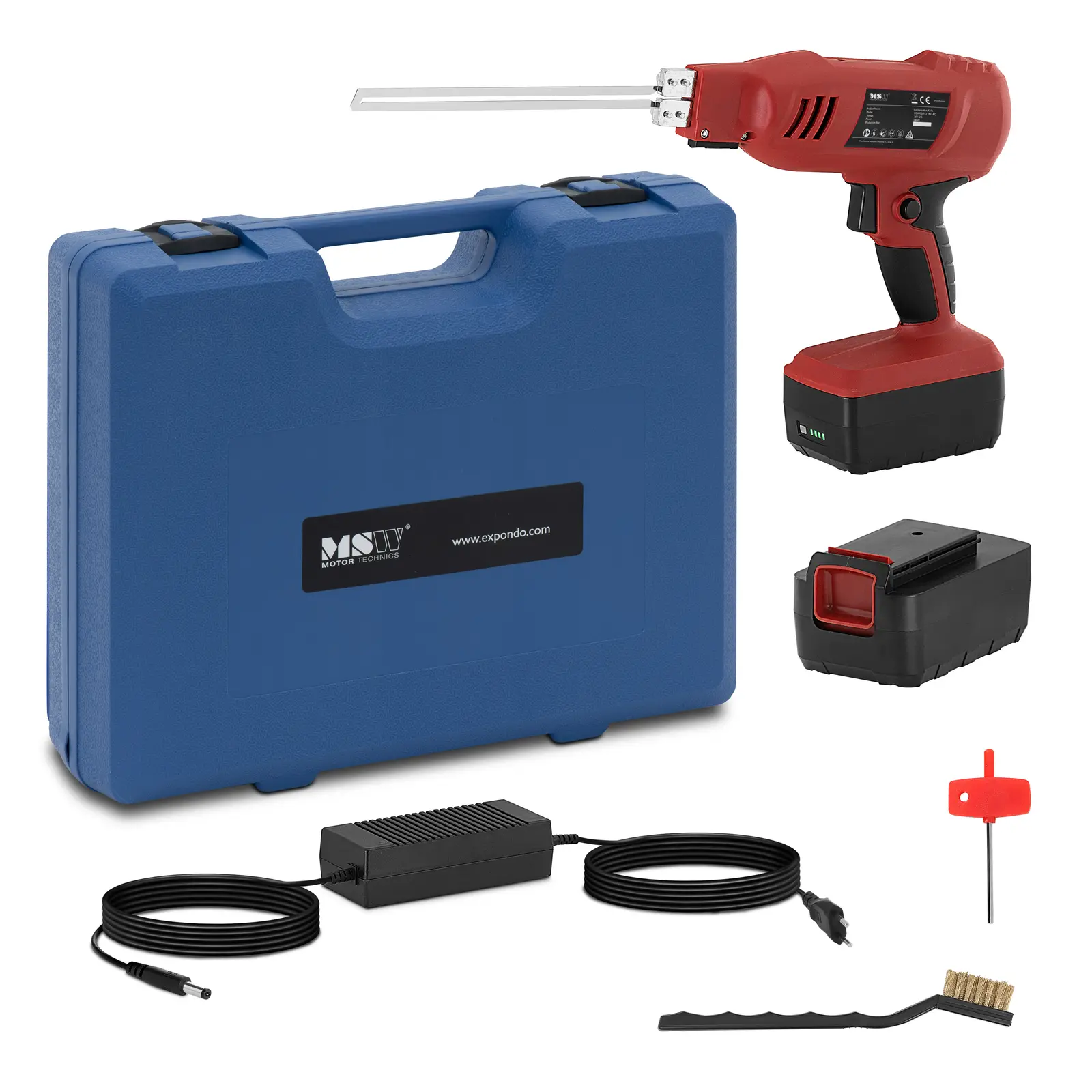 Mânerul ergonomic cu o singură mână permite o muncă deosebit de flexibilă, pe lângă funcționarea pe baterie. Cutterul pentru polistiren este, de asemenea, compact, ușor și vine cu un cuier pentru atunci când ambele mâini sunt necesare în altă parte. Lama pentru consumabile este flexibilă și ușor de înlocuit. În plus față de dispozitivul de tăiere a polistirenului, primiți și o gamă completă de accesorii: o lamă dreaptă (200 mm), două baterii litiu-ion, un încărcător, o perie de oțel pentru curățarea lamei și o cheie Allen pentru înlocuirea rapidă. Toate componentele pot fi depozitate și transportate în condiții de siguranță în carcasa robustă.