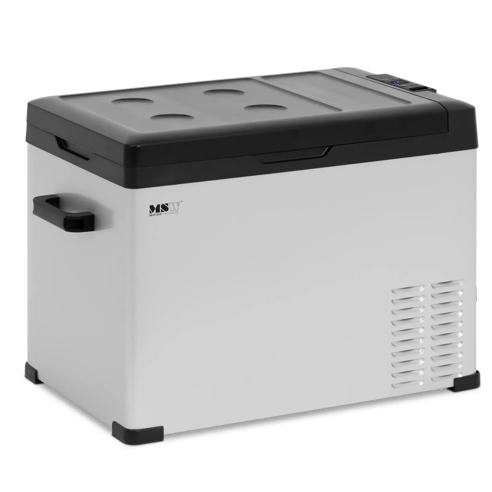 Cu frigiderul auto rezistent la șocuri, sunteți bine echipat pentru călătorii lungi și drumuri accidentate. Fie că este vorba de băuturi reci, alimente proaspete sau produse cosmetice delicate, totul încape în frigiderul compact pentru mașini, camioane, bărci sau rulote cu conexiuni de 12/24 V sau 100 - 240 V. Datorită intervalului său de temperatură de la -20 la 20 °C, frigiderul auto nu este potrivit doar pentru a păstra băuturile la rece, ci și pentru a depozita gheață sau a transporta produse congelate. Capacitatea de 40 l și compartimentele detașabile oferă un spațiu de depozitare generos într-o formă compactă.