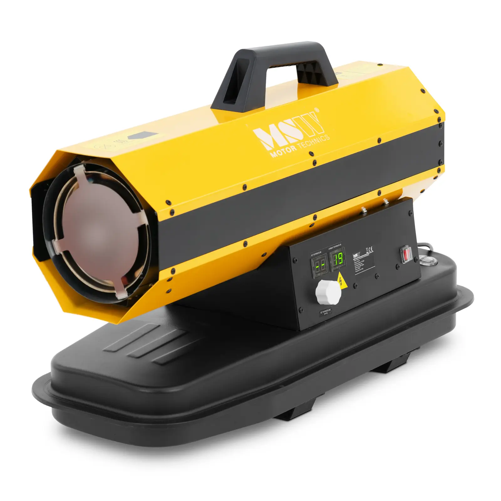 Cu o putere de încălzire de 20 kW și o temperatură de ieșire de 450°C, puteți încălzi rapid împrejurimile la temperatura dorită, reglabilă până la 55°C prin intermediul afișajului LED. Un termostat verifică temperatura exterioară și se încălzește atunci când temperatura scade sub valoarea setată. La turație maximă, încălzitorul cu ulei furnizează 600 m³/h de aer cald, pe care ventilatorul îl distribuie uniform în camere de până la 210 m². Pentru siguranța dumneavoastră, încălzitorul diesel din tablă de oțel rezistentă este echipat cu mai multe elemente de siguranță. Un detector detectează flăcările necontrolate și oprește automat aparatul. De asemenea, are protecție la supraîncălzire pentru o funcționare continuă în siguranță. În cazul unui încălzitor alimentat cu motorină, asigurați-vă că încăperile sunt întotdeauna bine ventilate.
