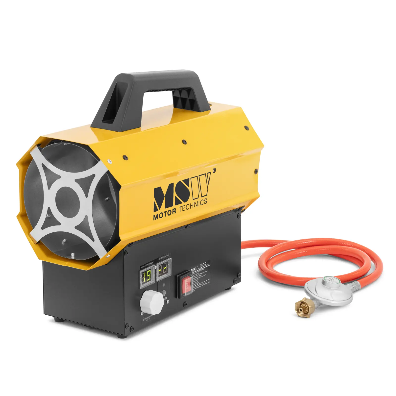 Fie că este vorba de un depozit sau de un cort, încălzitorul pe gaz MSW încălzește rapid și eficient spațiile mari. Cu o putere de încălzire de 20 kW și o temperatură de ieșire de 450 °C, puteți aduce rapid mediul înconjurător la temperatura dorită, pe care o puteți controla prin intermediul unui afișaj LED. Un termostat verifică temperatura exterioară și se încălzește atunci când temperatura scade sub valoarea setată. Aprinderea este complet automată. La putere maximă, încălzitorul pe gaz produce 320 m³/h de aer cald, pe care ventilatorul îl distribuie uniform în cameră. Aceste specificații garantează că vă veți bucura de temperaturi de lucru confortabile în camere de până la 160 m². Un singur mâner vă permite să poziționați perfect dispozitivul sau să îl transportați cu ușurință în următoarea locație.
