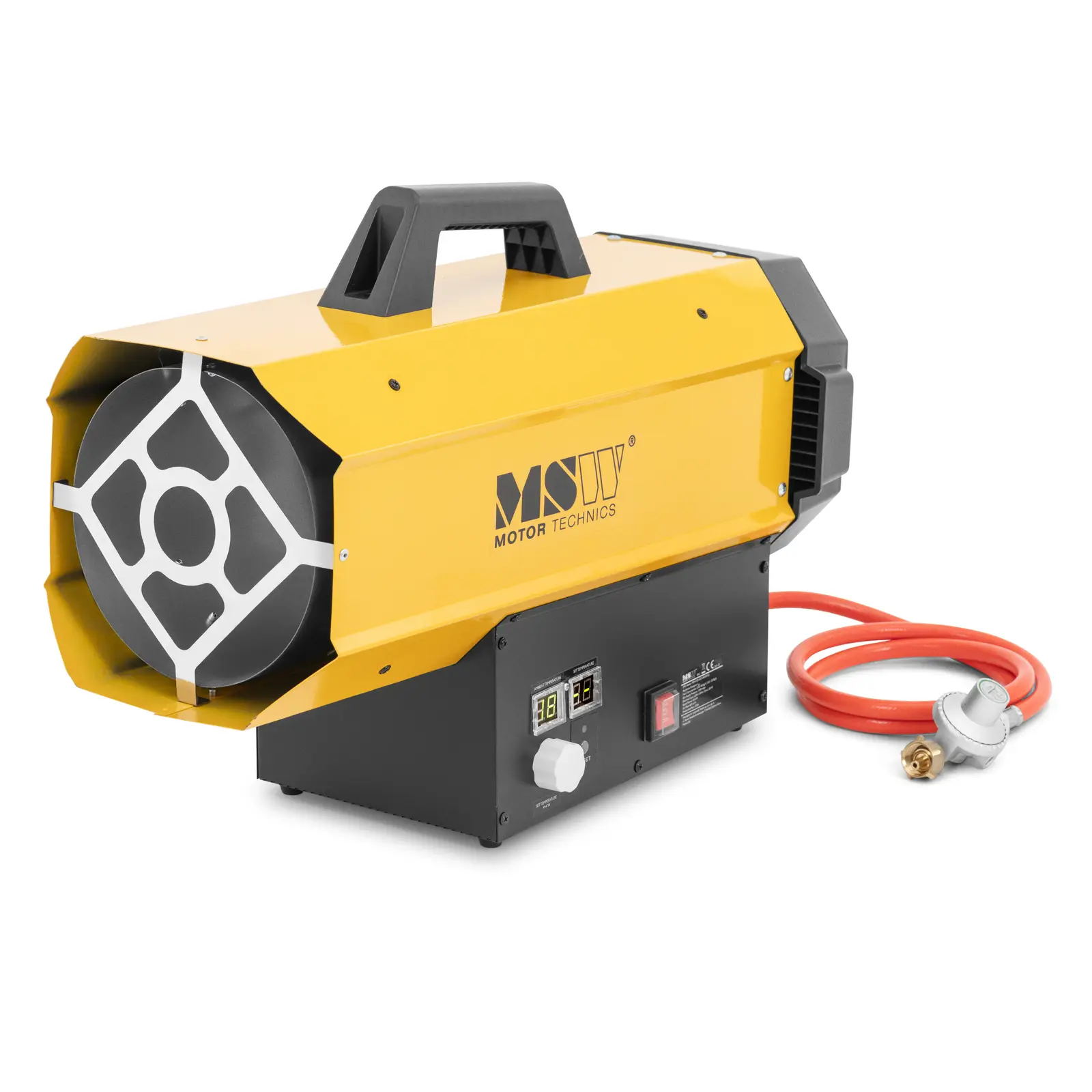 Fie că este vorba de un depozit sau de un cort, încălzitorul pe gaz MSW încălzește rapid și eficient spațiile mari. Cu o putere de încălzire de 60 kW și o temperatură de ieșire de 450 °C, puteți aduce rapid mediul înconjurător la temperatura dorită, pe care o puteți controla prin intermediul unui afișaj LED. Un termostat verifică temperatura exterioară și se încălzește atunci când temperatura scade sub valoarea setată. Aprinderea este complet automată. La putere maximă, încălzitorul pe gaz produce 872 m³/h de aer cald, pe care ventilatorul îl distribuie uniform în cameră. Aceste specificații garantează că vă veți bucura de temperaturi de lucru confortabile în camere de până la 510 m². Un singur mâner vă permite să poziționați perfect dispozitivul sau să îl transportați cu ușurință în următoarea locație.