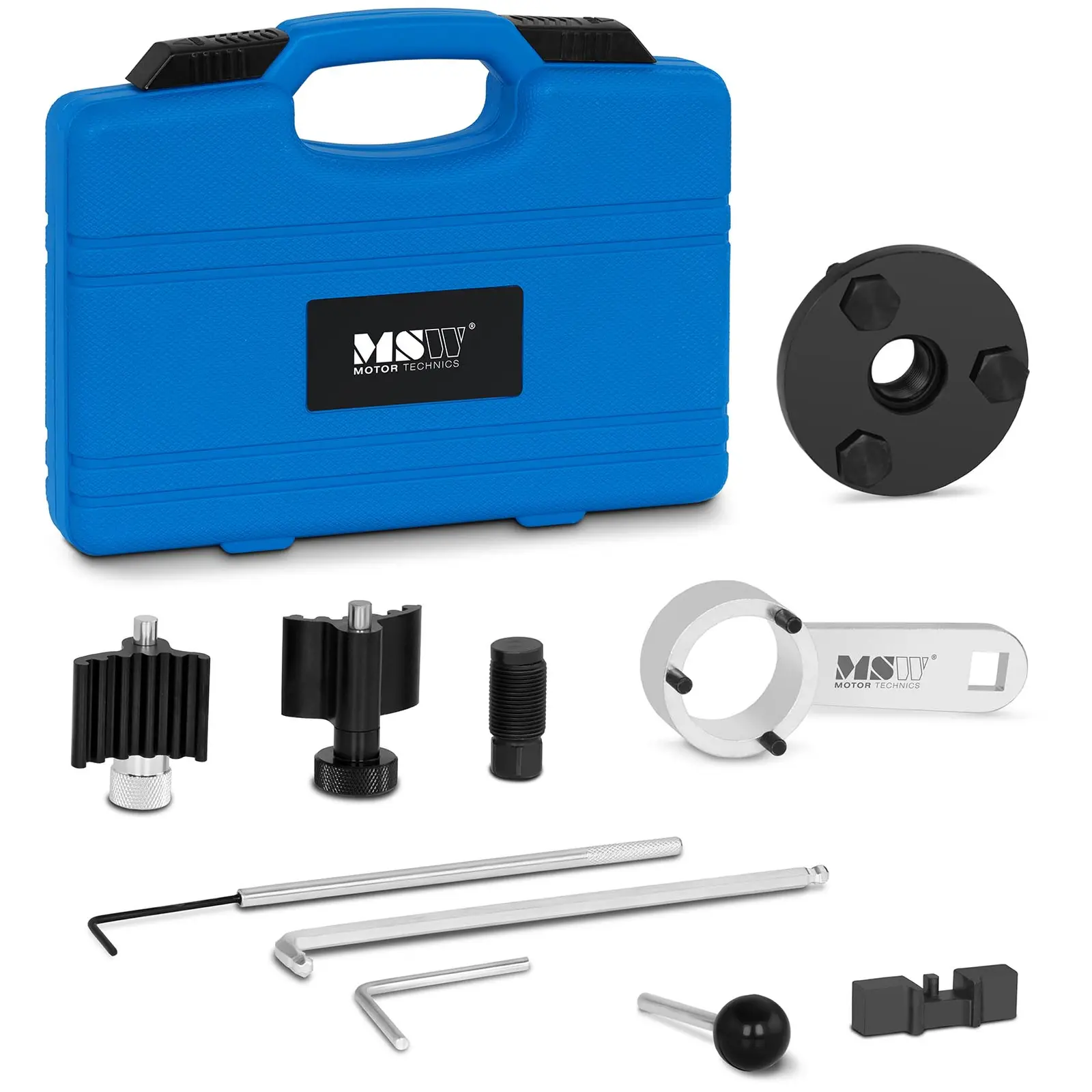 Cu ajutorul instrumentului de reglare a arborelui cu came, puteți efectua chiar și lucrări complicate la diferite modele Audi, Seat, Skoda și VW. Această unealtă profesională este adaptată în mod optim la elementele corespunzătoare ale motorului și este ușor de utilizat. Instrumentul de blocare a curelei cu dinți este cea mai eficientă metodă de fixare și reglare a motoarelor. Alte unelte disponibile în comerț pot deteriora atât motorul, cât și accidenta utilizatorul. În plus, lucrul cu setul de scule din MSW are o uzură foarte redusă.