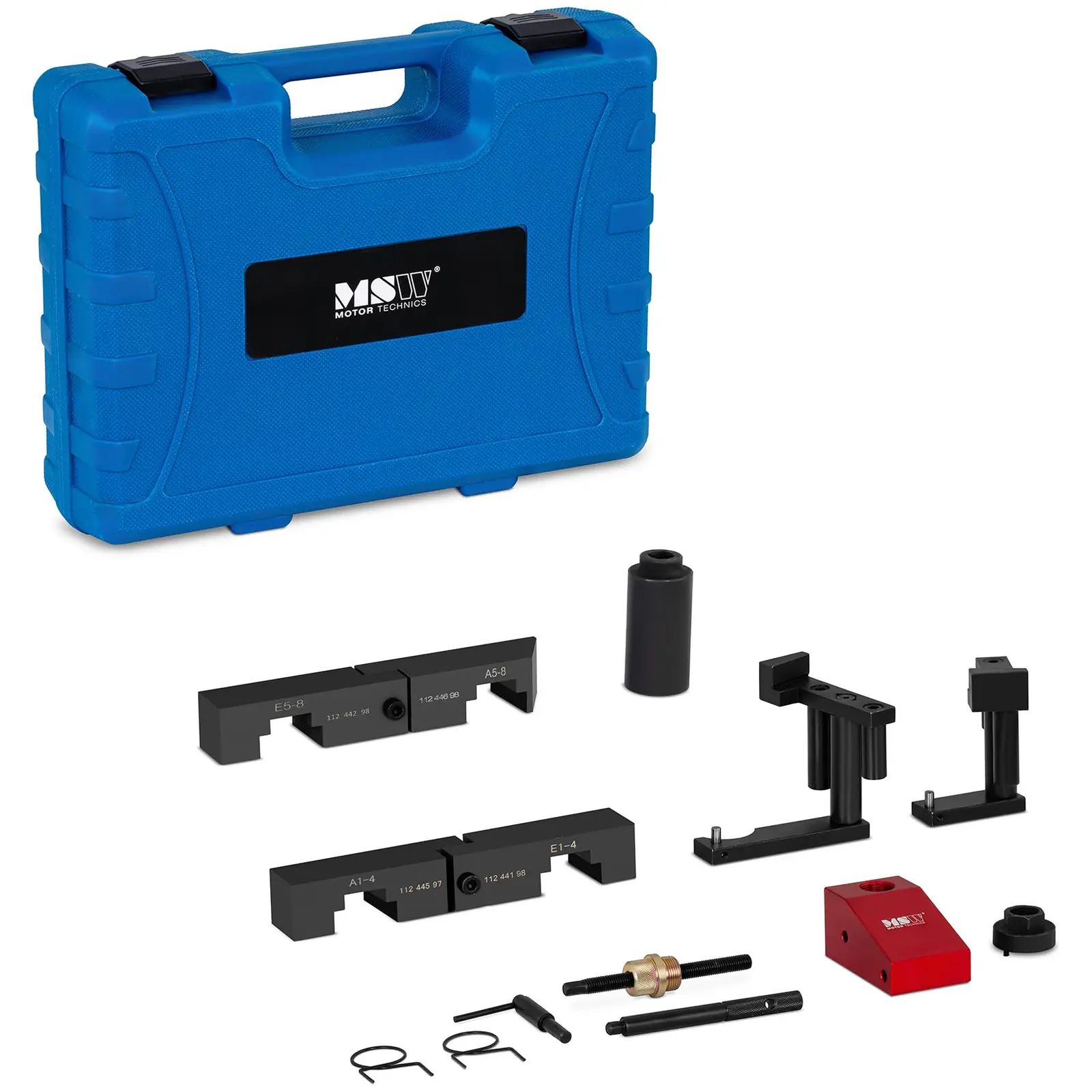 Dacă doriți să reparați în mod profesionist un motor V8 puternic de la BMW, setul de scule de sincronizare a motorului MSW-ETT-18 de la MSW, experții pentru echipamente de garaj de înaltă calitate, ajustarea sau blocarea lanțurilor de distribuție, instalarea și demontarea arborilor cu came și ajustarea sincronizării nu reprezintă o problemă.