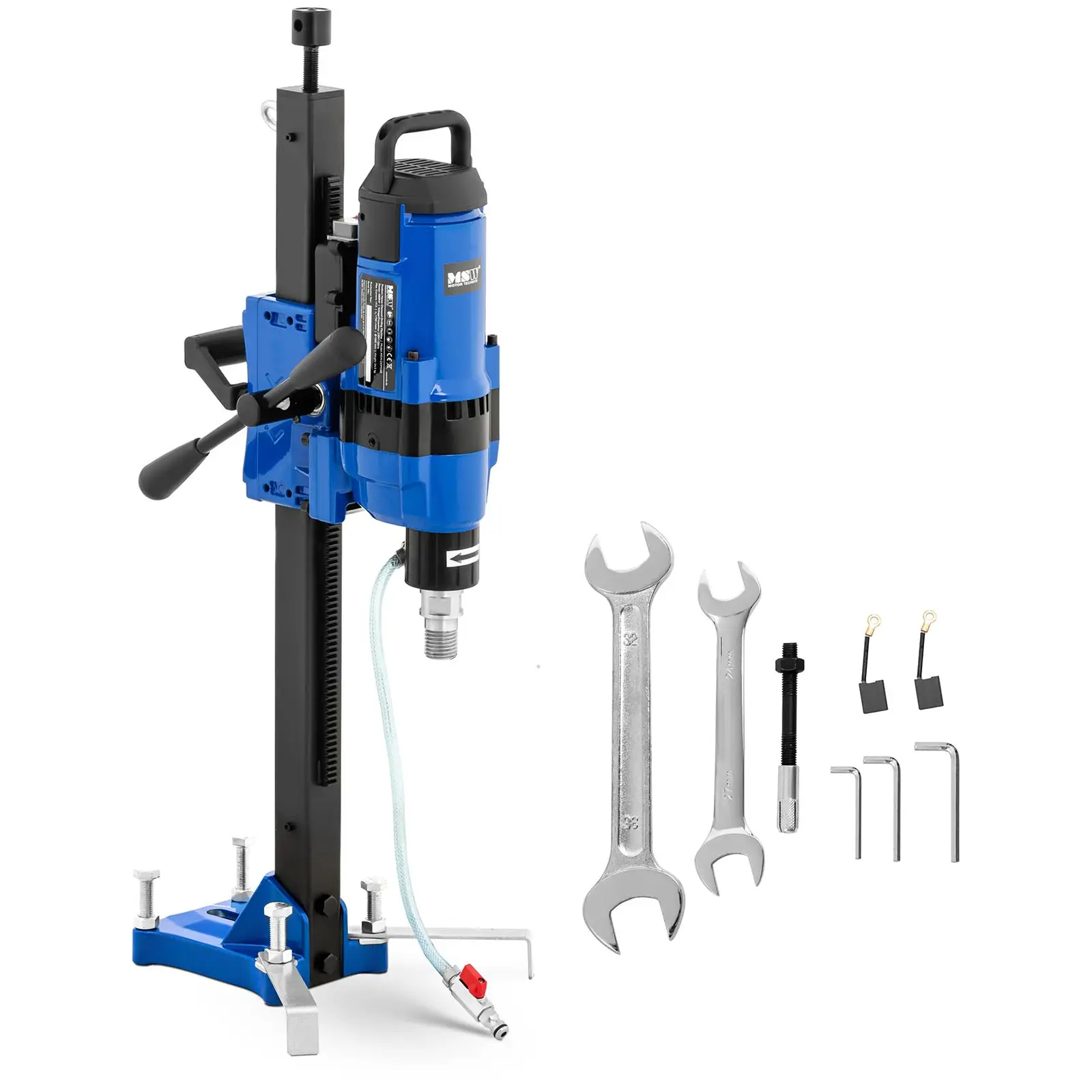 Puteți lucra cu o mare varietate de burghie cu diamant. Mașina de carotat cu diamant cu suport stăpânește totul, de la găuri în beton la beton armat, ciment, zidărie, asfalt și piatră. Puteți găuri atât pe orizontală, cât și pe verticală, în funcție de nevoile dvs. Atât forarea umedă, cât și cea uscată este posibilă datorită unui conector de apă.