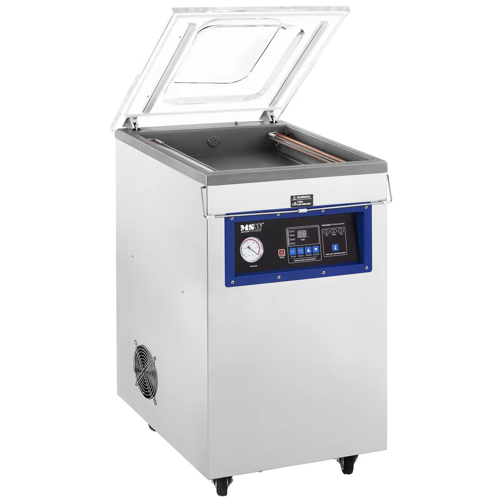 Unitatea de vid MSW-VPM-900G permite o depozitare îndelungată a diverselor produse, reducând în același timp volumul mărfurilor, lichidelor și documentelor, ceea ce economisește spațiu extrem de mult. Procesul de vid funcționează confortabil cu pungile din folie furnizate. Camera de vid este încărcată de sus și vă permite să sigilați simultan mai multe produse mici cu o dimensiune de 440 x 425 x 65 mm. Înălțimea camerei este de 120 mm, așa că este potrivită și pentru produse mai mari.