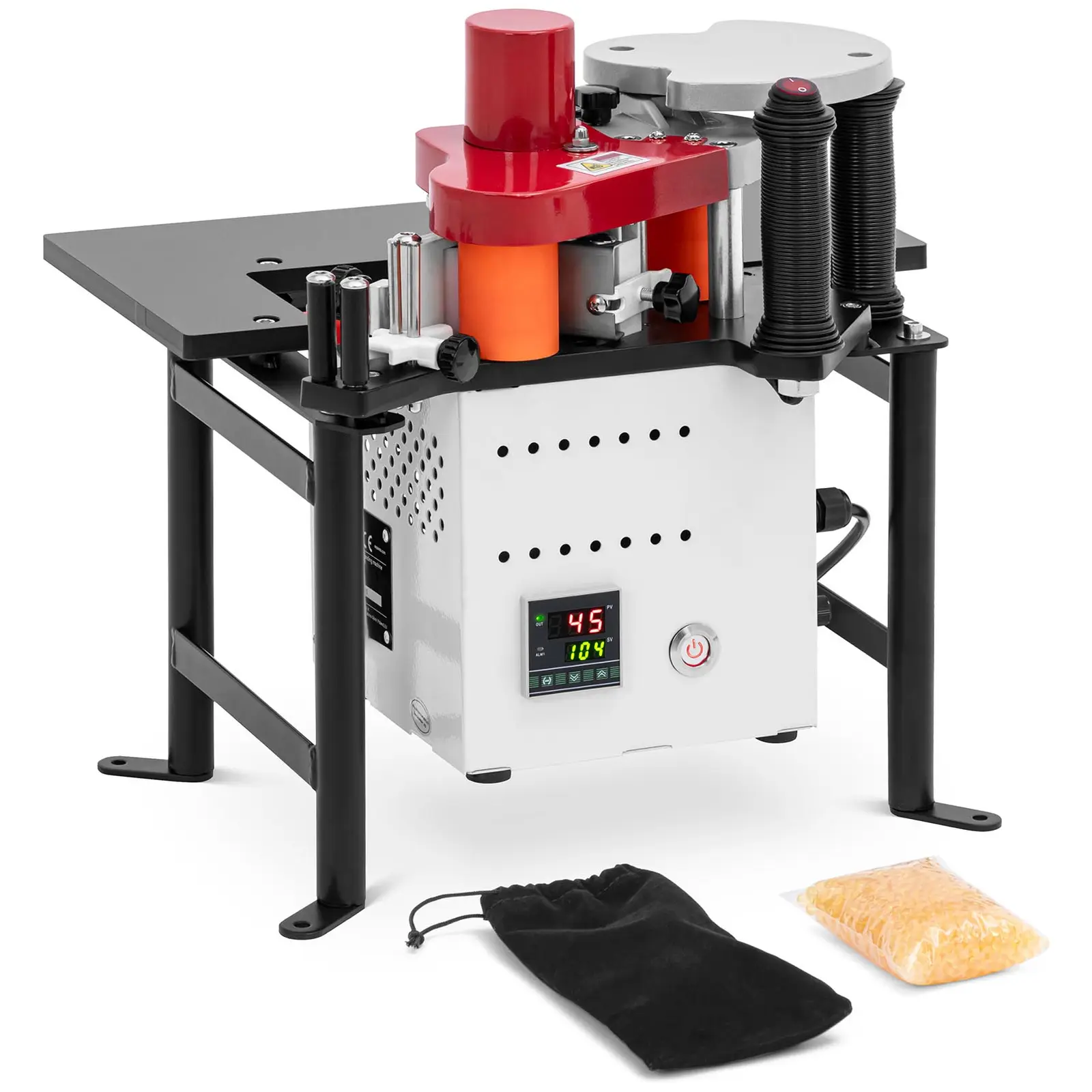 Eficiența este o prioritate de top pentru noi. Cu un element de încălzire puternic de 765 W, mașina de placare a marginilor este gata de utilizare într-o clipă și asigură temperaturi constante pe parcursul întregului proces de lucru. Pe afișajul integrat puteți citi controlul precis al temperaturii în intervalul de la 120 la 180 °C. Acest lucru vă permite să prelucrați o varietate de materiale de margine, cum ar fi lemnul, furnirul, PVC, ABS sau melamina, împreună cu diferiți adezivi, întotdeauna în condiții optime.