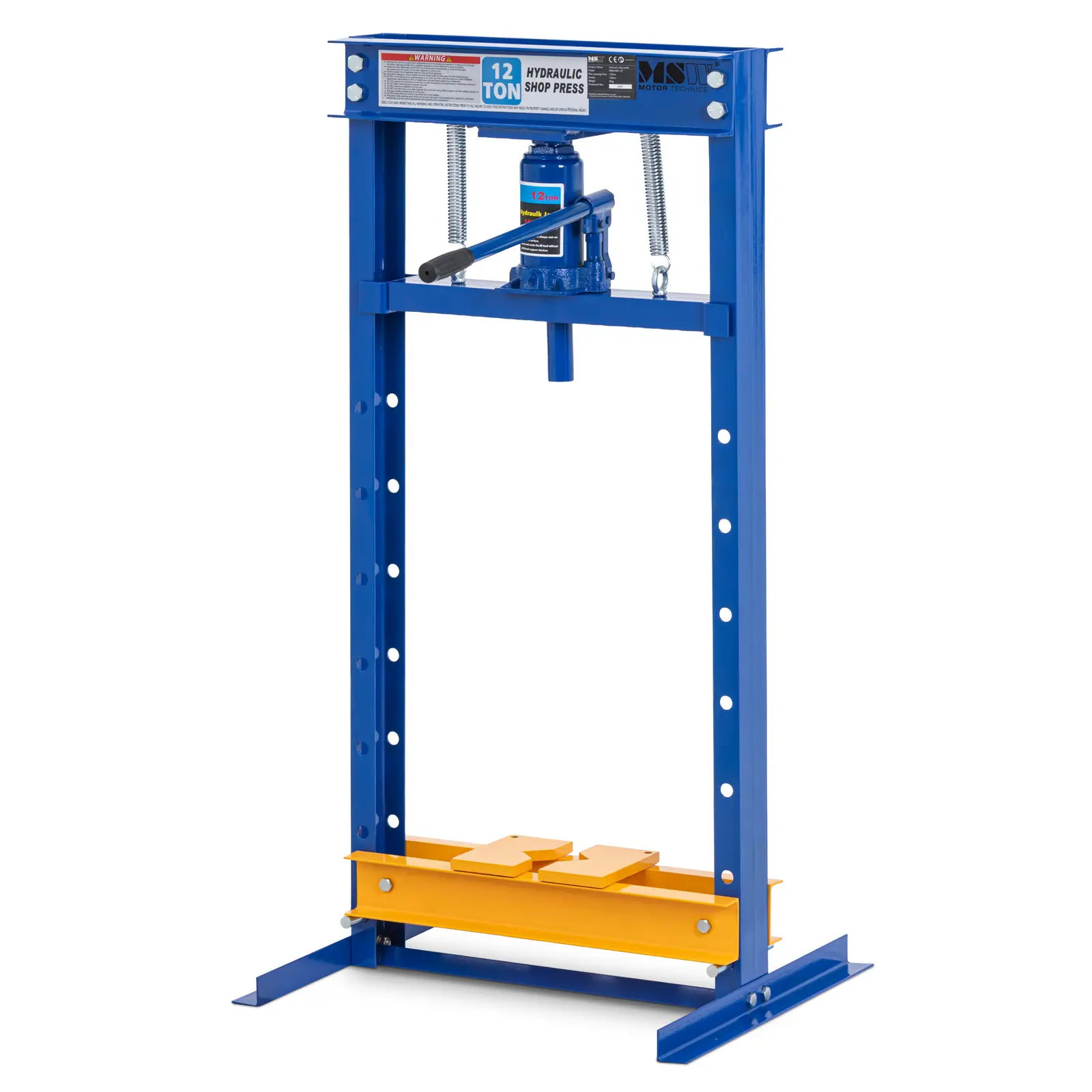 Această presă hidraulică MSW, cu o forță de presare de 12 tone și o cursă de 130 mm, este concepută pentru a face față celor mai dificile sarcini de atelier. Fie că îndoiți, aliniați și asamblați piese de lucru, această presă hidraulică oferă putere și precizie în timpul sarcinilor complexe. Șapte opțiuni de înălțime de până la 120 cm asigură confort ergonomic și control complet la orice înălțime. Această flexibilitate ridicată permite o muncă confortabilă și precisă în atelierul dumneavoastră.