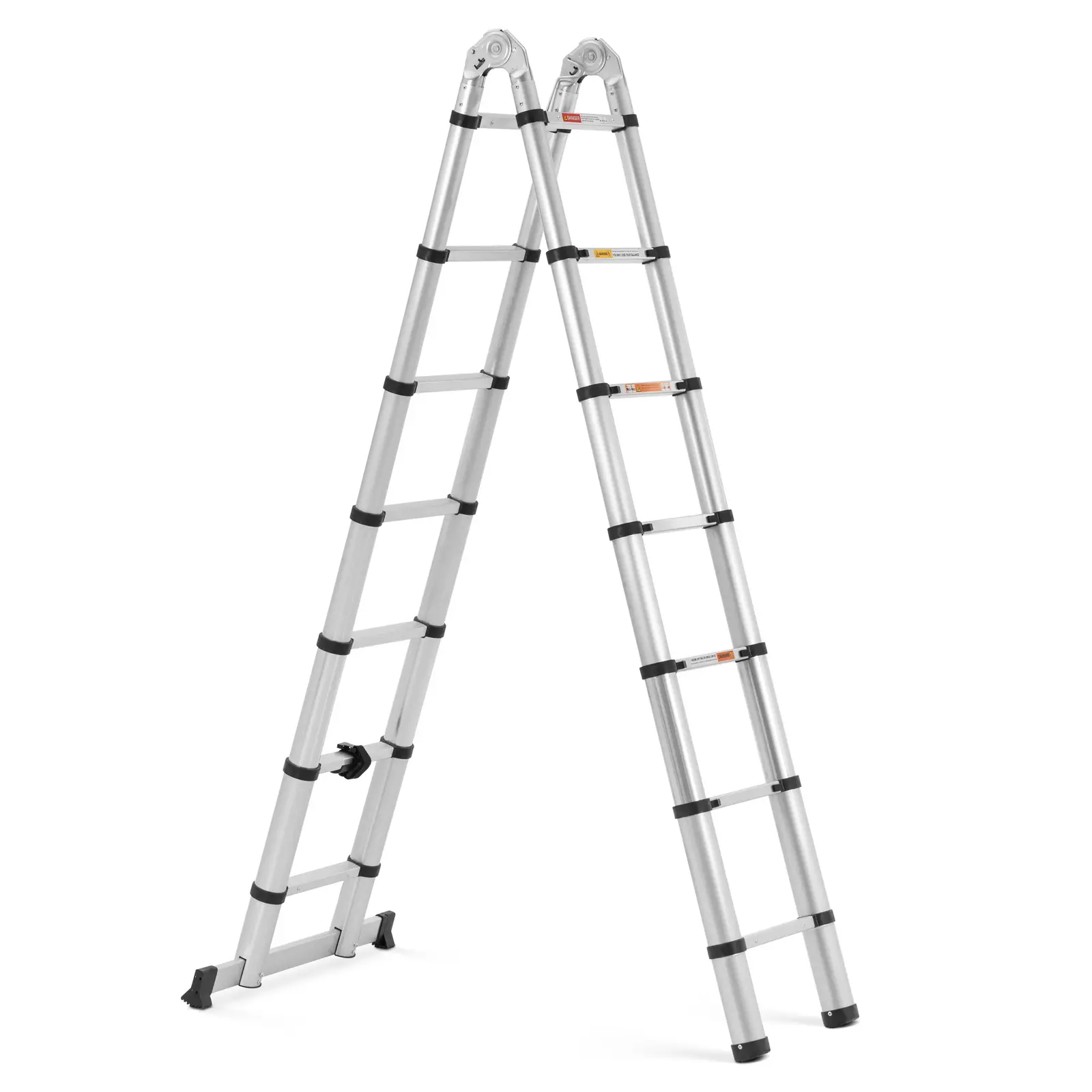 Scară telescopică pliabilă - 14 trepte - aluminiu - înălțime: 0,88 - 2,13/4,40 m