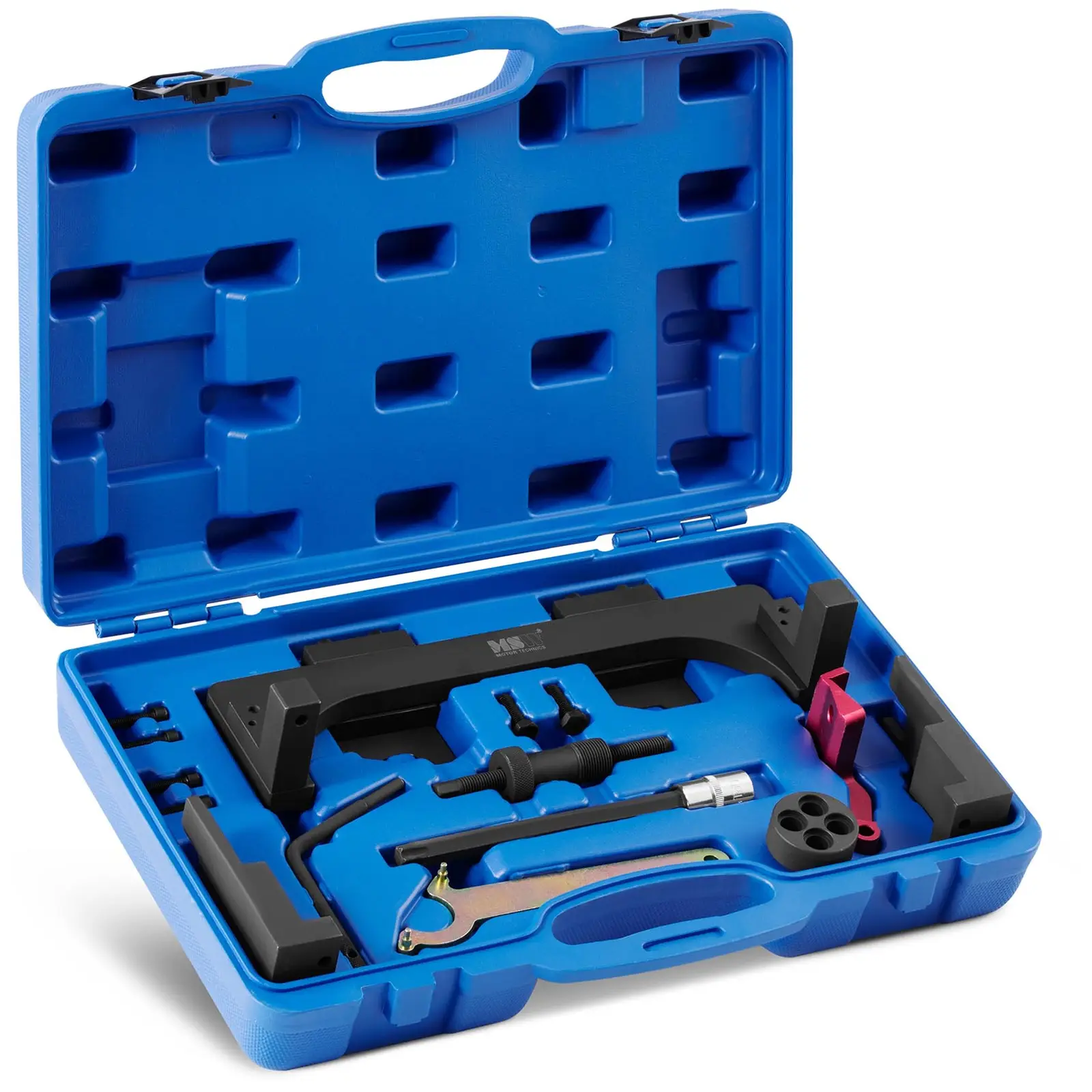 Cu instrumentul de blocare, puteți chiar să efectuați lucrări complicate la noua generație de motoare modulare BMW pe benzină, de exemplu la BMW B38, B48 și B58. Această unealtă profesională se potrivește în mod optim la elementele corespunzătoare ale motorului și, prin urmare, este ușor de utilizat. Setul de instrumente de sincronizare a motorului garantează cea mai eficientă metodă de fixare și reglare a motorului. Lucrul cu alte unelte disponibile în comerț poate deteriora piesele motorului și poate răni utilizatorul. Setul de scule MSW are, de asemenea, niveluri de uzură foarte scăzute.