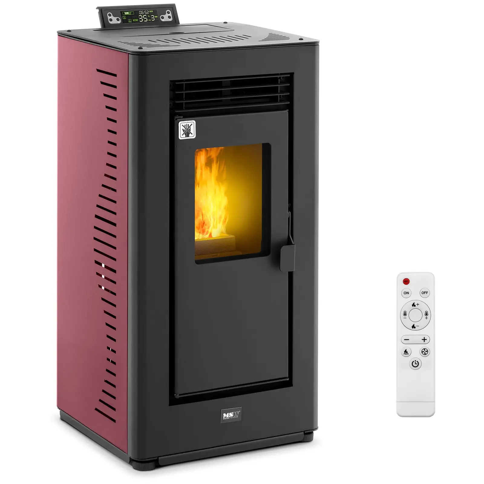 Fabricat din oțel carbon de înaltă calitate în combinație cu oțel laminat la rece, șemineul pe peleți oferă nu numai o putere termică optimizată, ci și o calitate durabilă și rezistentă. Designul atrăgător în culorile roșu și negru face, de asemenea, ca acest încălzitor eficient din punct de vedere energetic și ecologic să atragă atenția în orice încăpere.