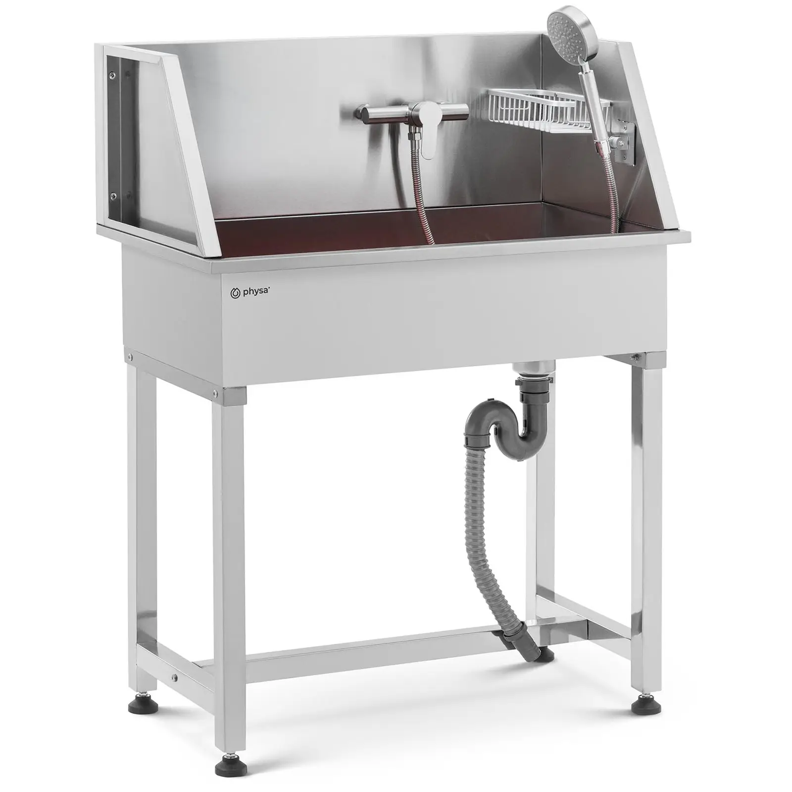 Îngrijirea profesională a animalelor de companie a devenit ușoară cu baia pentru câini din oțel inoxidabil de la physa. Setul complet oferă toate furtunurile de conectare și de acces (GL/2 / 60 cm fiecare), precum și un robinet mixer, un cap de duș cu trei niveluri de presiune a apei, un suport pentru șampon și un covoraș de silicon detașabil și antiderapant. Baia pentru câini din oțel inoxidabil poate transporta cu ușurință prietenii blănoși care cântăresc până la 60 kg.