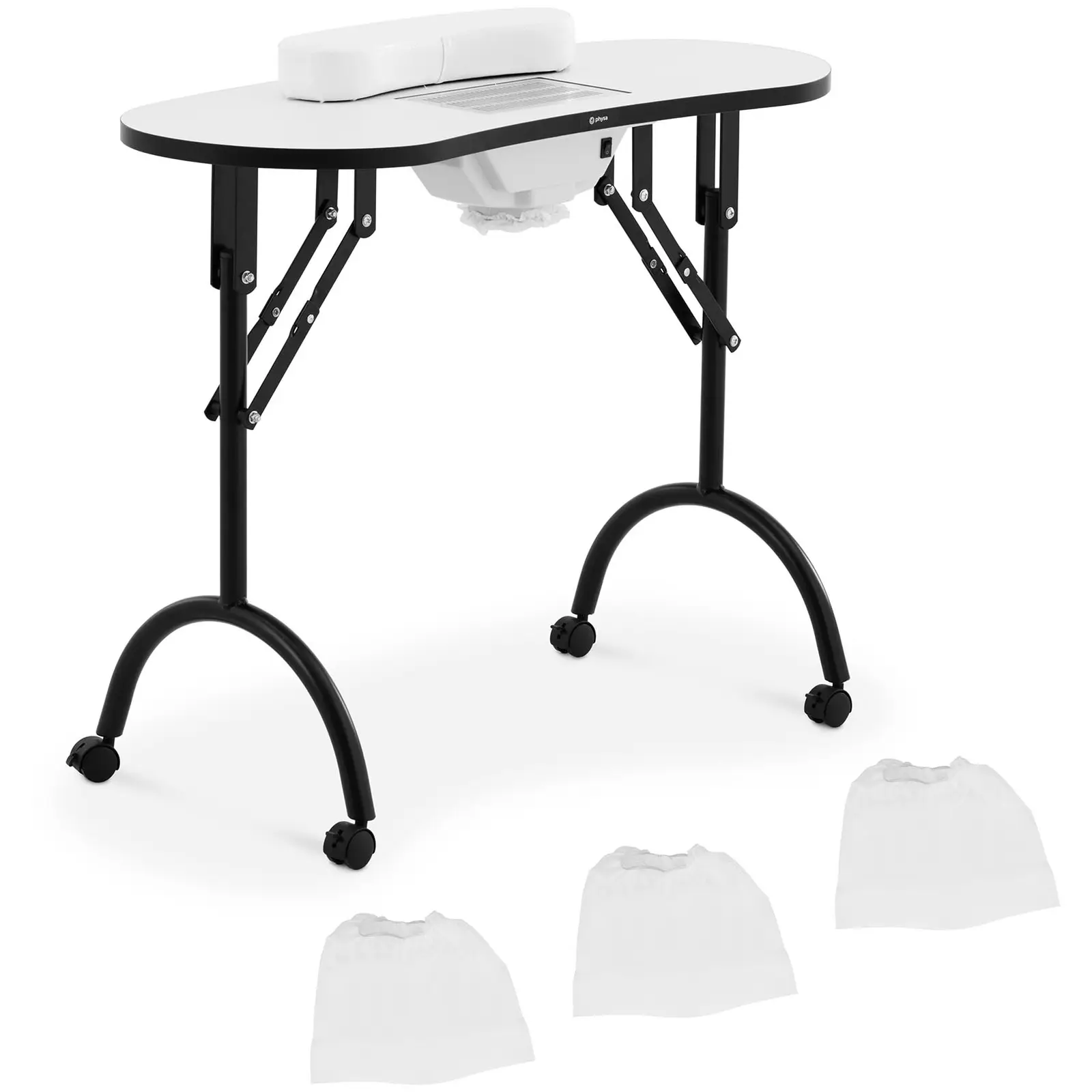 Birou pentru unghii - pliabil - Alb - 4 Roți - Extracție