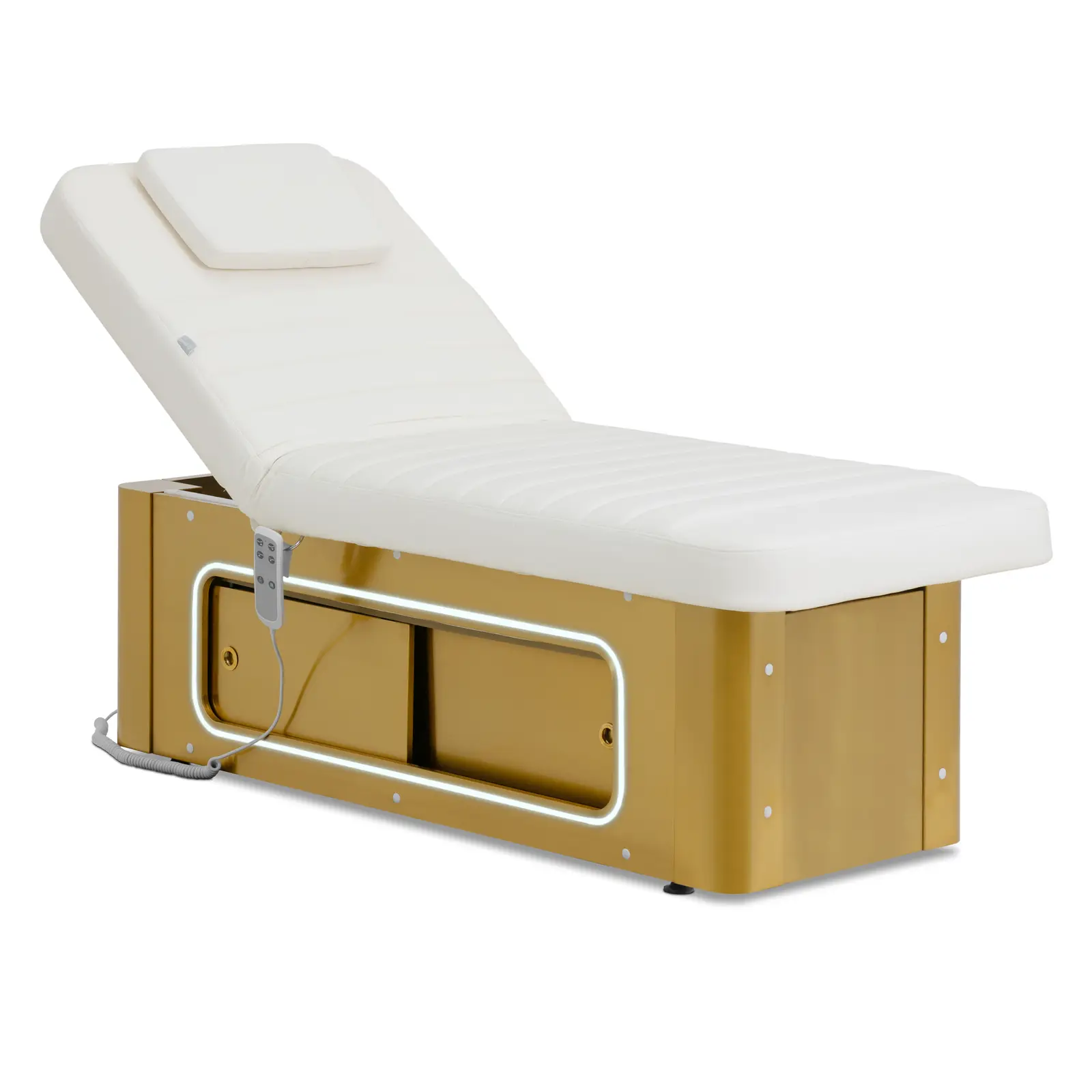 Pat electric Beauty Bed - 3 motoare - 300 W - 190 x 65 x 60 - 73 cm - 200 kg - alb / auriu