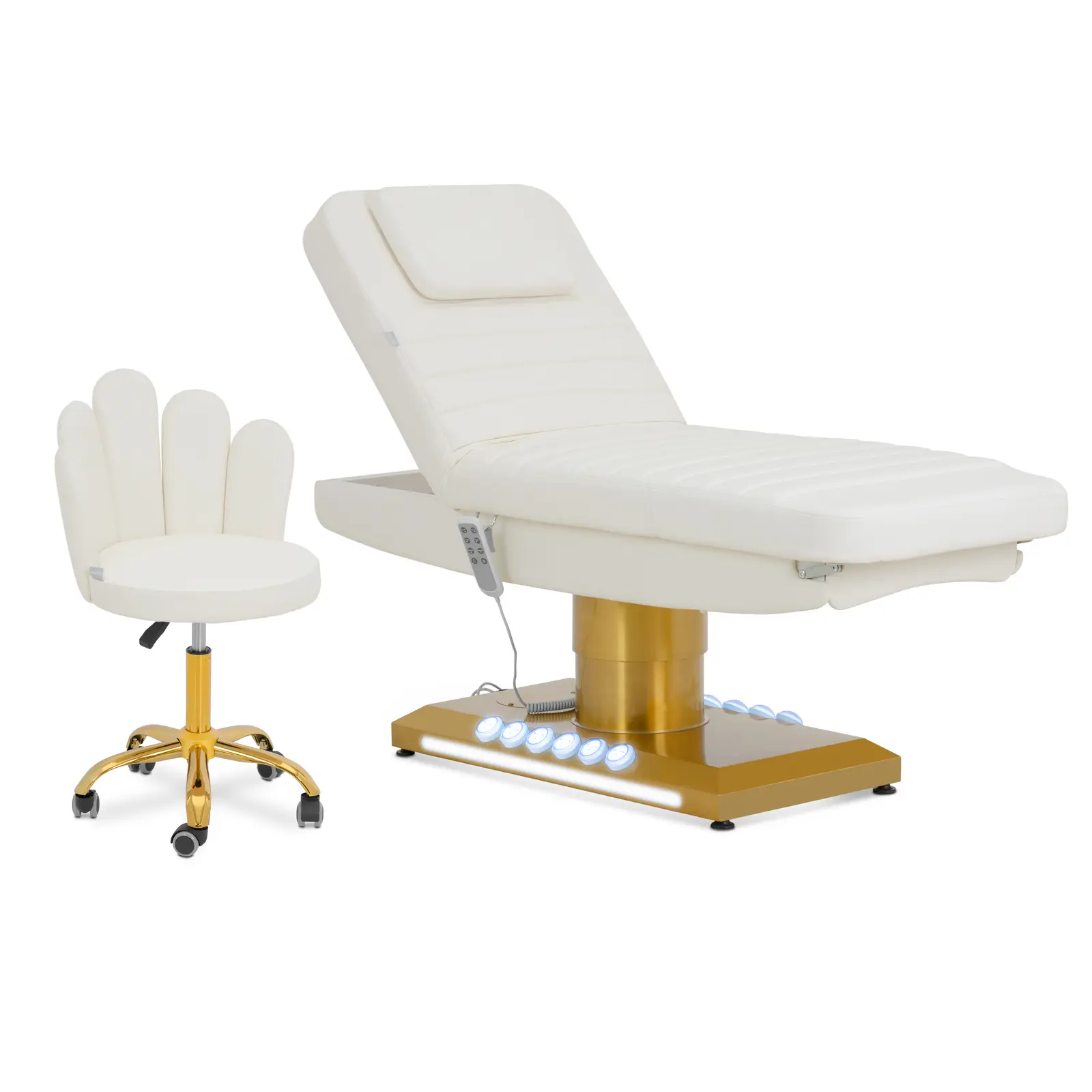 Pat electric de frumusețe cu taburet rotativ - 3 motoare - 300 W - 188 x 70 x 59 - 80 cm - 200 kg - alb / auriu