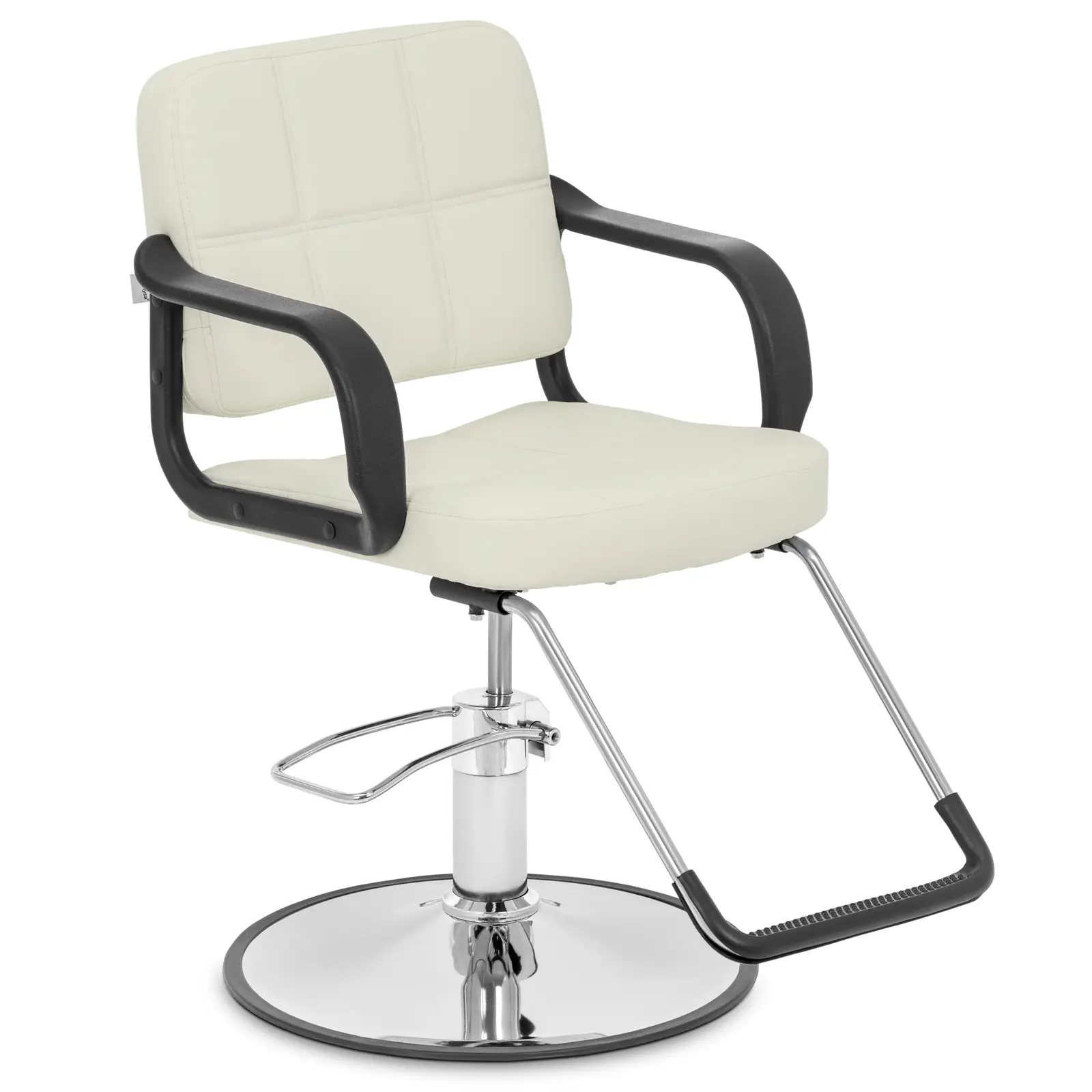Puteți regla cu ușurință înălțimea scaunului de styling între 50 și 64 cm cu ajutorul unei pompe hidraulice. În plus, puteți roti fără efort scaunul în poziția din care lucrați cel mai bine și apoi îl puteți bloca în poziție. În acest fel, puteți obține întotdeauna o poziție de lucru optimă în doar câțiva pași simpli, astfel încât să nu vă obosiți nici măcar în zilele lungi. Suportul ergonomic pentru picioare asigură o postură relaxată pentru clienții dumneavoastră.
