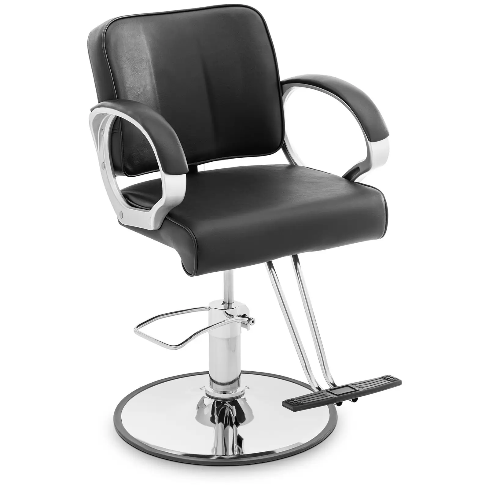 Cadrul scaunului de frizerie este fabricat din oțel robust. Acest lucru conferă scaunului cu rulment de 180 kg o fixare sigură și o durabilitate ridicată. Pentru o poziție de lucru optimă, scaunul de coafură poate fi rotit la 360 ° și poate fi ușor de aliniat.