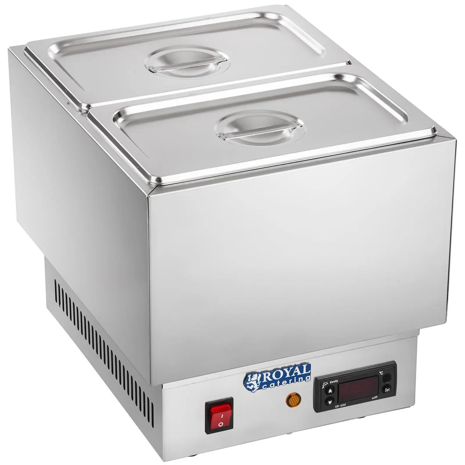 Aparat de Topit Ciocolată - 2 Recipiente GN 1/4Produs cu defecte estetice Aparat de Topit Ciocolată - 2 Recipiente GN 1/4Ciocolată de topit - oțel inoxidabil - 960 W - 15 l - Royal Catering