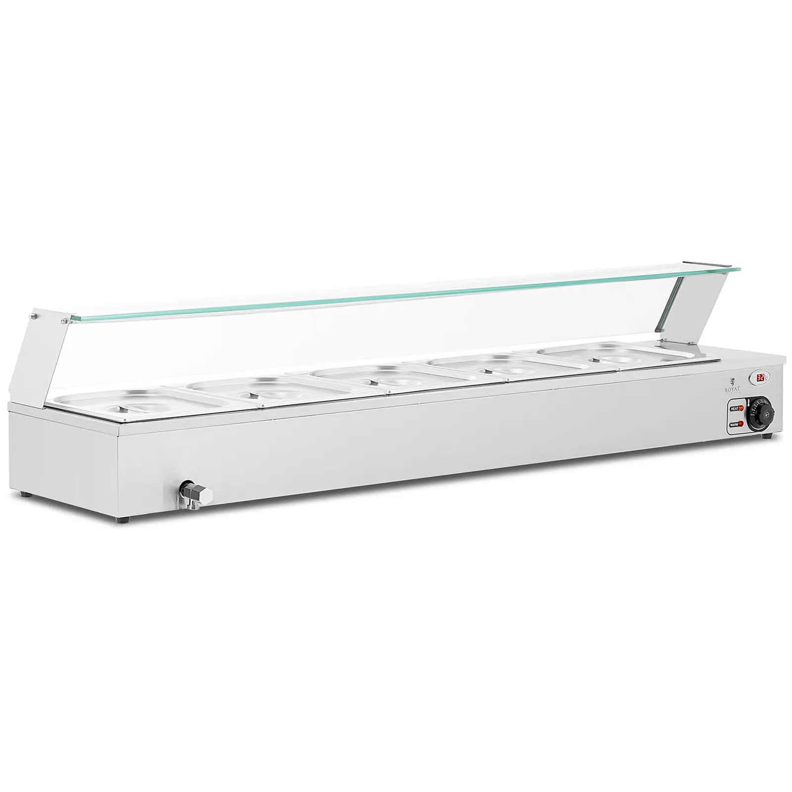 Bain-Marie - 2,000 W - 5 GN 1/2 - robinet de scurgere - protecție pentru sticlăBufet Cald - 6 GN - cu accesoriu pentru carne și robinet de scurgereÎncălzitor de supă - 2 x 2,75 litri - 300 WBufet Cald - 5 x GN - 1/2 - Robinet de scurgereBufet Cald - 6 GN - cu atașament pentru carneÎncălzitor de supă - 1 x 2,75 litri - 150 W