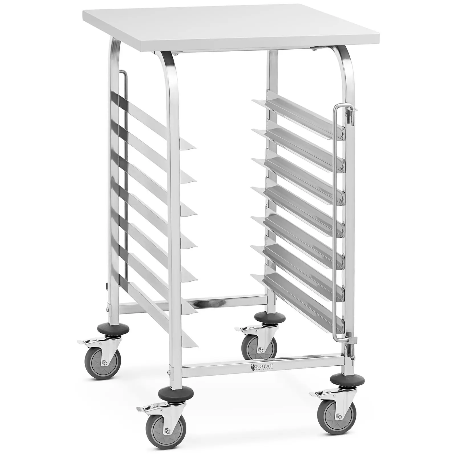Cărucior pentru tăvi - 7 rafturi + tavă - oțel inoxidabil - Royal Catering