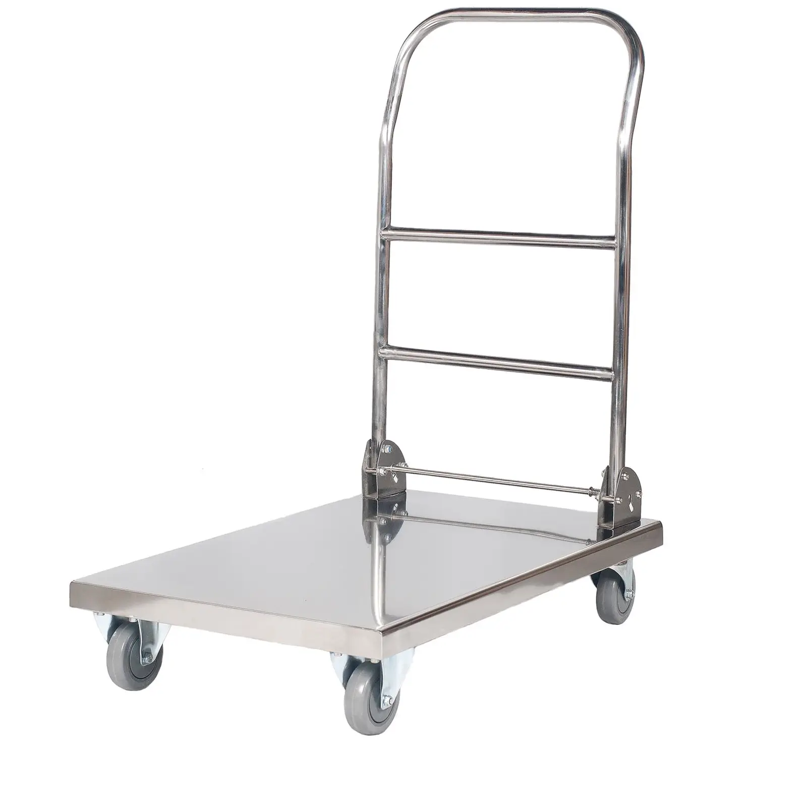 Construcția foarte robustă din oțel inoxidabil vă permite să încărcați căruciorul cu platformă cu până la 330 kg.