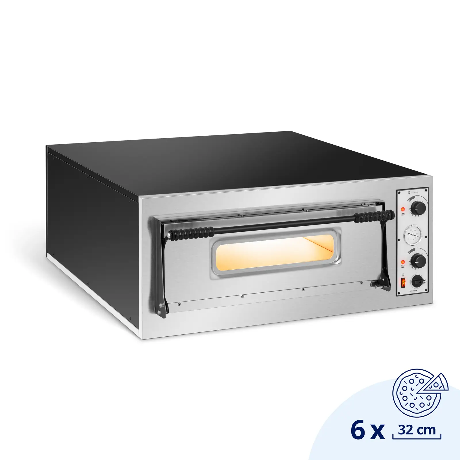 Cuptor electric pentru pizza - 6 x 33 cm - 1 cameră - 6600 W - 400 V - piatră de argilă refractară - Royal Catering