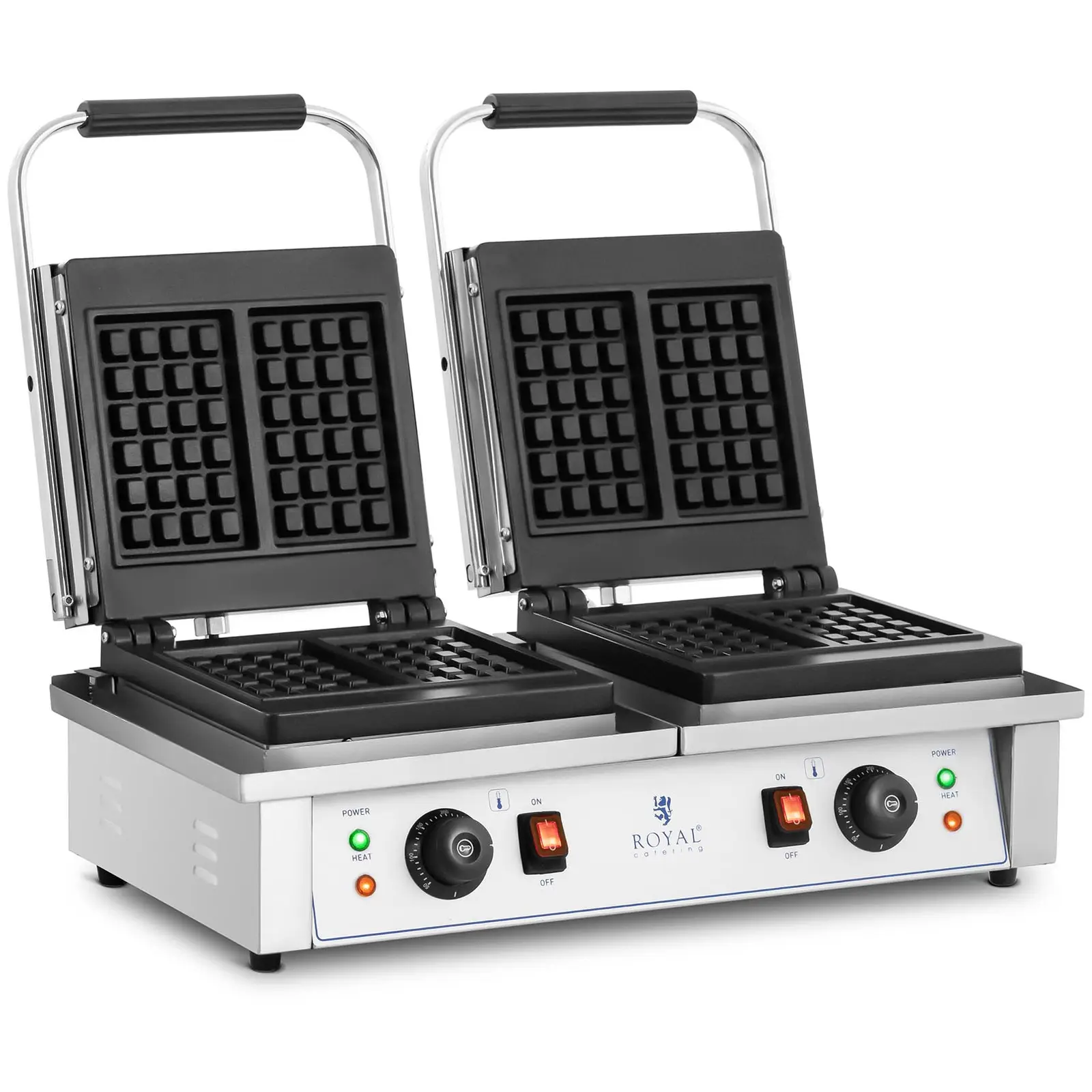 Dublu Forma metalica pentru vafe - Vafe belgiene - Royal Catering - 2 x 2,000 WAparat de Făcut Vafe - 2.000 wați - DreptunghiularAparat de făcut vafe cu bule - 1.415 WAparat de Făcut Vafe - 1,550 W - formă lunguiață- tip hot dog pe bățAparat Waffles - 2 x 2.000 wați - dreptunghiularAparat de Făcut Vafe Duble - 2 x 1300 Wați - rotund