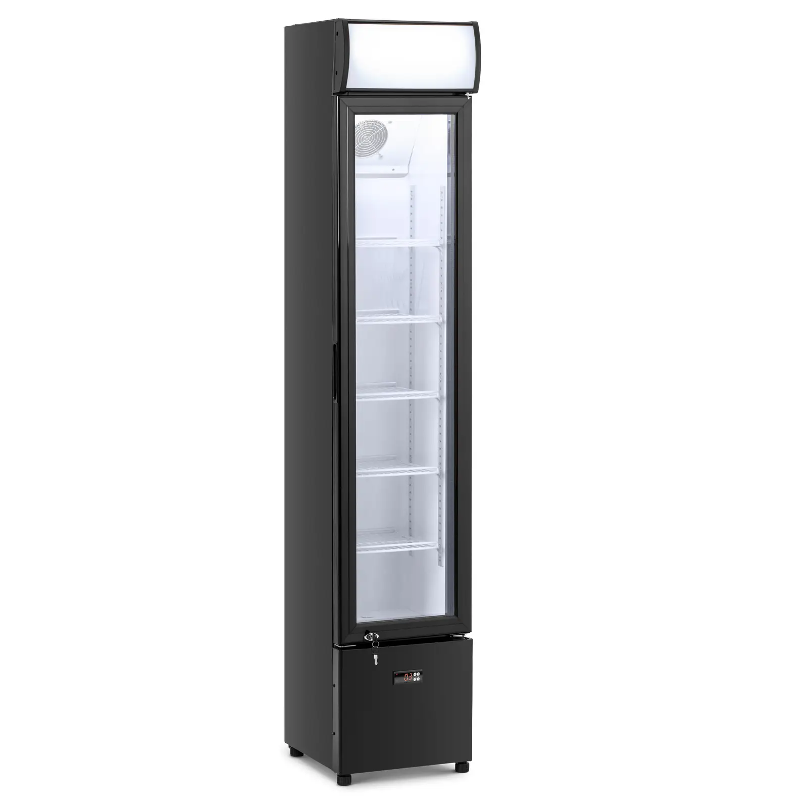 În frigiderul de băuturi independent de la Royal Catering, puteți răci și prezenta sucuri, apă, băuturi răcoritoare, băuturi alcoolice și altele. Iluminarea sa discretă cu LED-uri și designul elegant, în nuanțe de negru, îl fac ideal pentru utilizarea în restaurante, benzinării, la evenimente, cateringuri, standuri de expoziție, în baruri sau birouri. În medii mai întunecate, iluminarea ambientală cu LED-uri contribuie la o atmosferă plăcută și la o prezentare atrăgătoare a produselor dumneavoastră. Ușa închisă cu lacăt din sticlă călită, cu dublu perete, pune în evidență băuturile răcoritoare și alcoolice într-un mod sigur și vizibil, garantând în același timp o temperatură constantă.