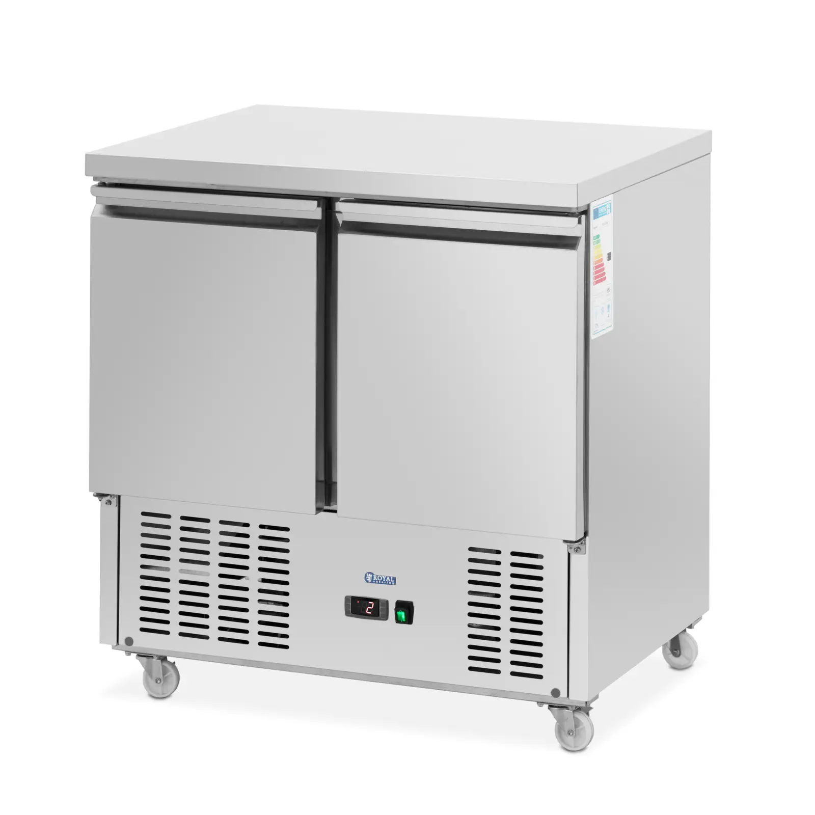Frigider Saladette mobil - 240 l - 2 compartimente - 90 x 70 cm - clasa C - oțel inoxidabil - Royal Catering
