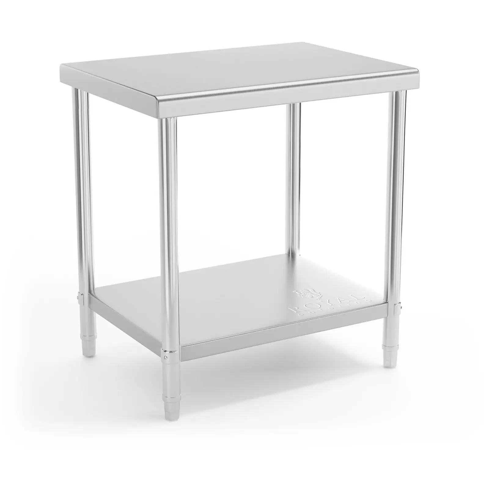 Blatul mesei de bucătărie din oțel inoxidabil măsoară 80 x 60 cm și oferă mult spațiu pentru munca de zi cu zi. Când lucrați cu alimente, ingrediente, unelte, aparate sau pregătiți mese, poate fi de mare ajutor să aveți o suprafață de lucru mai mare. Un al doilea nivel, inferior, oferă spațiu suplimentar de depozitare, permițându-vă să vă mențineți munca organizată în mod clar.