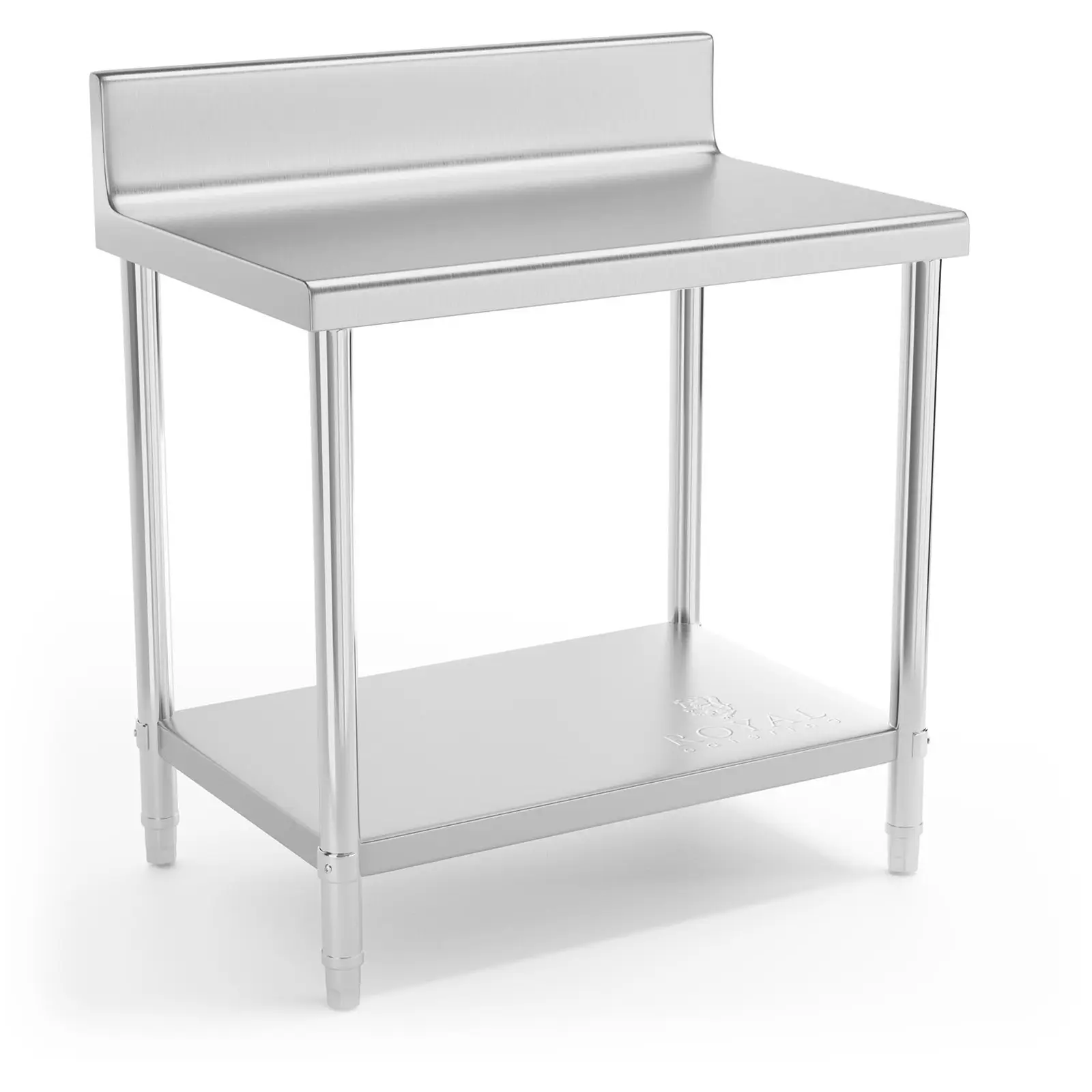 Blatul de lucru al mesei de bucătărie din oțel inoxidabil măsoară 90 x 60 cm și oferă suficient spațiu pentru munca zilnică. Atunci când lucrați cu alimente, ingrediente, unelte, aparate sau când pregătiți mese, poate fi foarte util să aveți o suprafață de lucru mai mare. Un al doilea nivel inferior oferă spațiu de depozitare suplimentar, permițându-vă să vă păstrați munca bine organizată. Suportul cu înălțimea de 11,5 cm protejează pereții și împrejurimile de stropi de apă, resturi și deteriorări.