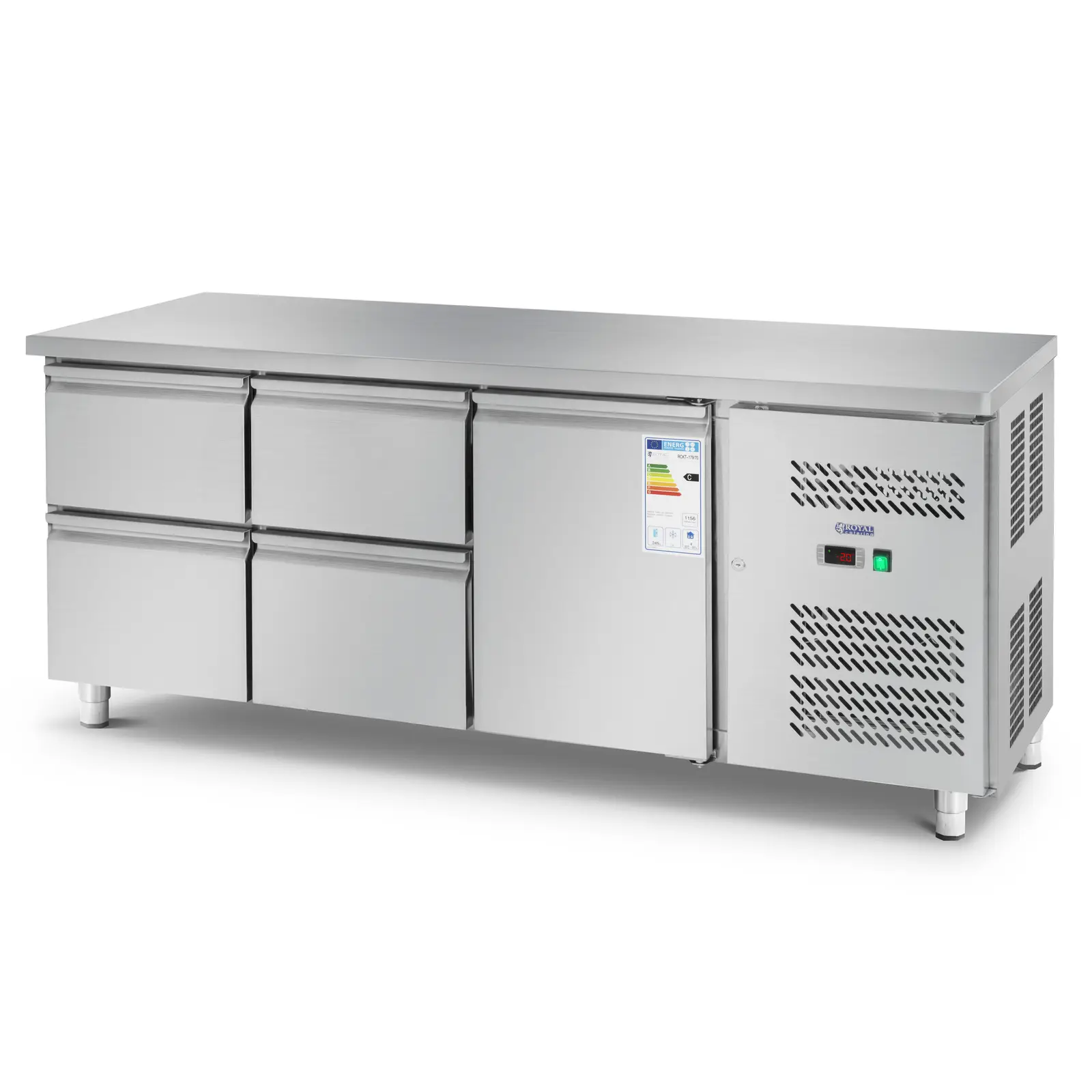 Masă Frigorifică - 403 L - 1 raft - 4 sertare - 179,5 x 71 cm - Clasa B - Oțel inoxidabil - Royal Catering