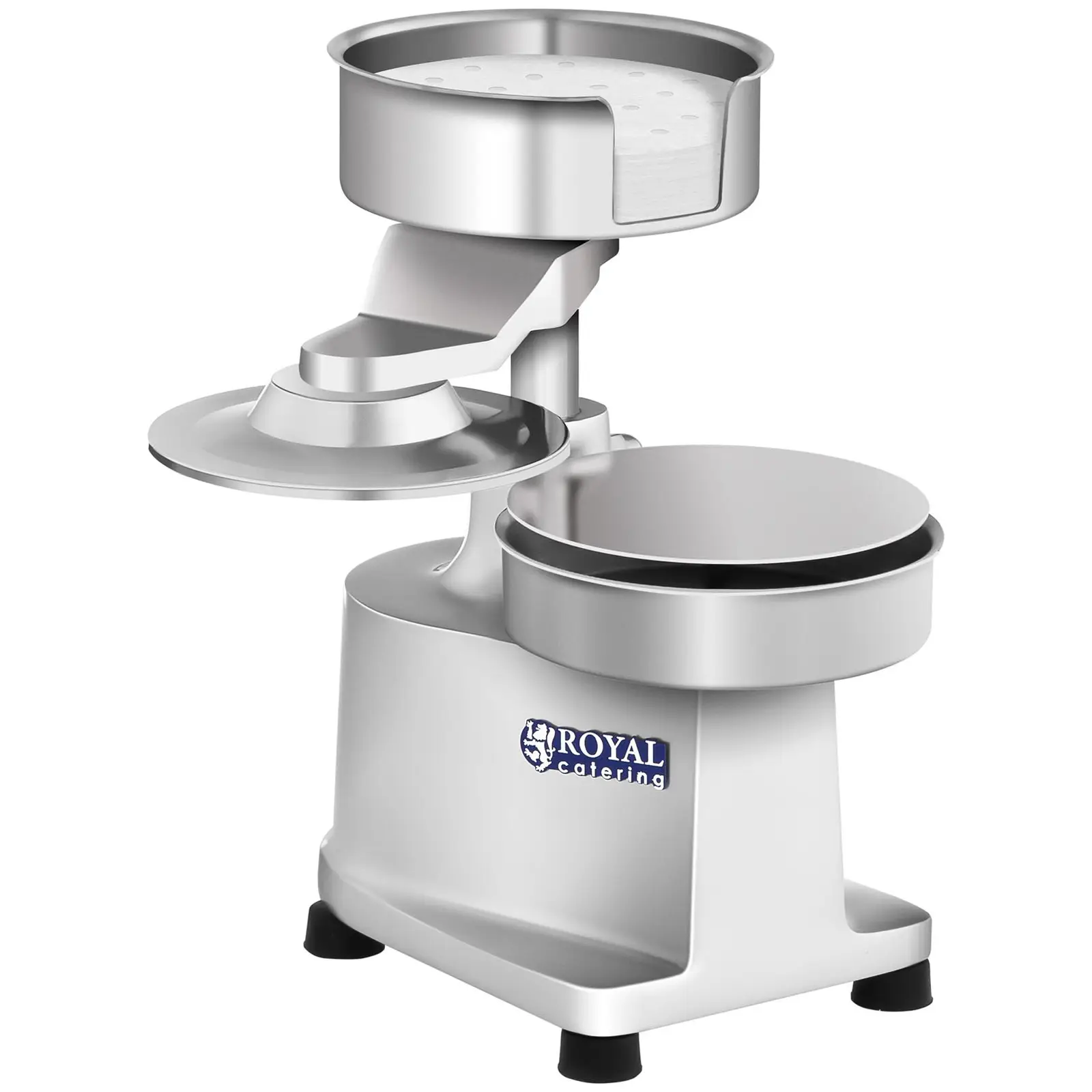 Cu aparatul de burger RCHM-150 de la Royal Catering, puteți crea chifteluțe de burger în formă perfectă în doar câțiva pași simpli. Mașina de făcut chifle este concepută pentru uz profesional în sectorul gastronomiei și poate fi integrată cu ușurință în orice lanț de producție, făcându-l astfel completarea ideală pentru consumabilele dvs. de catering.
