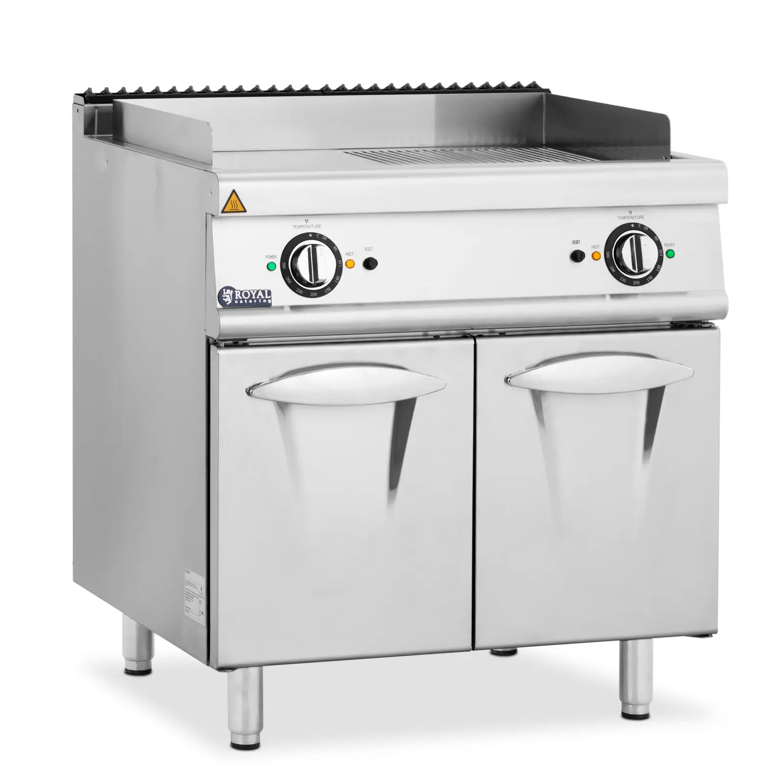 Cu placa electrică pentru grătar de la Royal Catering, vă puteți trata oaspeții cu mâncăruri delicioase la grătar pe tot parcursul anului. Plita electrică impresionează prin emisiile reduse de fum, precum și prin funcționarea igienică și foarte curată. Plita electrică este, de asemenea, excelentă pentru utilizarea în bucătării comerciale - de la restaurante și bistrouri la camioane alimentare și evenimente de catering. Sub suprafața grătarului, există un dulap spațios pentru oale, tigăi și alte ustensile de bucătărie, care le păstrează fără praf.