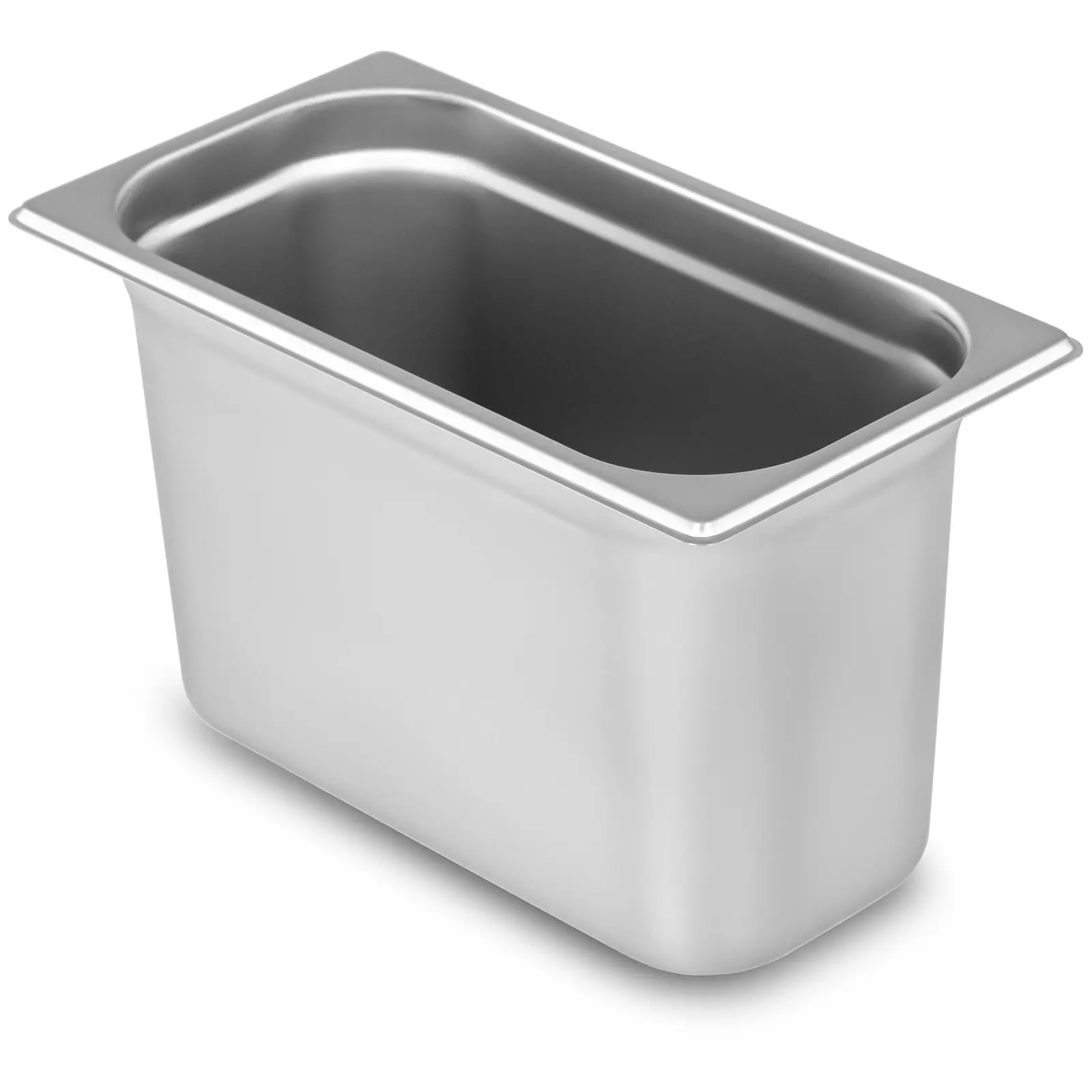 Tava Gastronorm (GN) 1/3 RCGN-1/3X200 de la Royal Catering a fost special concepută pentru nevoile profesionale de catering. Este ideal pentru utilizarea în restaurante, cantine, snack baruri, baruri de salate, cafenele, pizzerii, hoteluri etc. Se utilizează pentru a depozita vasele, pentru a le menține calde la bain-marie pentru o perioadă lungă de timp sau pentru a le răci într-o vitrină frigorifică.