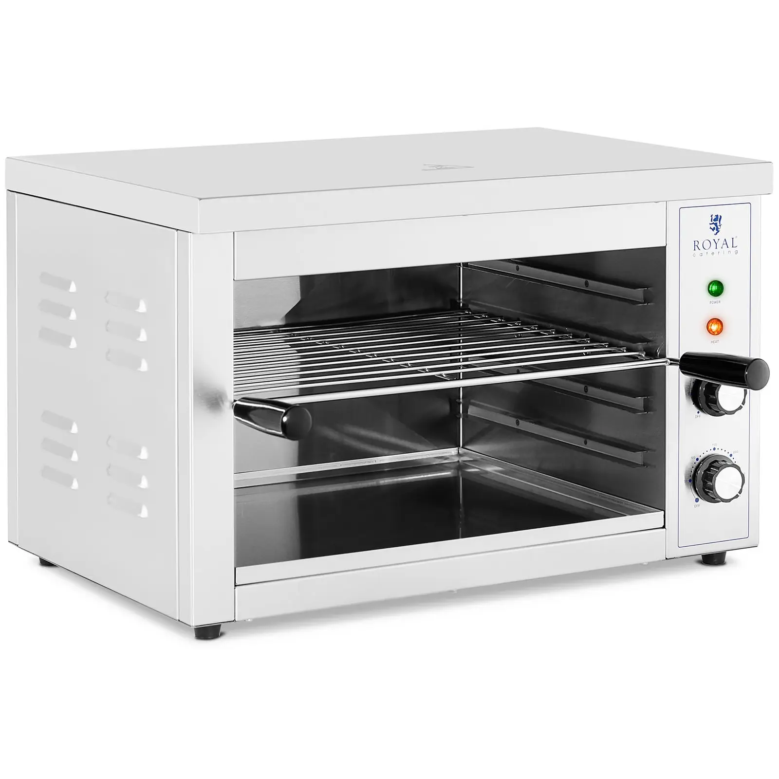 Toaster Hotelier Salamander - 3.000 W - 50 - 300 ° CGrătar Salamander - 2 nivele - 3250WProdus cu defecte estetice Salamander Grill - 5000 W - 400 V - 60 cm - element de încălzire reglabil pe înălțime - Royal CateringGrătar Salamander - 2000 Wați