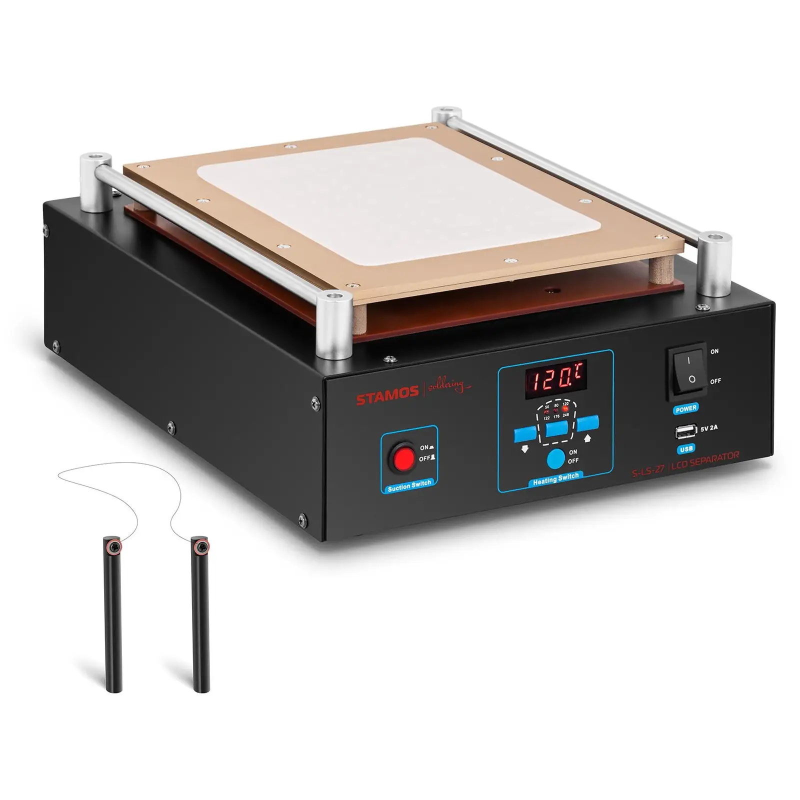 Separatorul LCD are o putere totală de 1.180 W, ceea ce îi permite să atingă rapid o temperatură cuprinsă între 50 și 120 °C. Puteți controla cu precizie temperatura și funcția de vid prin intermediul panoului de control practic cu LED-uri. Mașina de separare a ecranelor este ideală pentru atelierele de electronică, atelierele de bricolaj și atelierele de hobby.