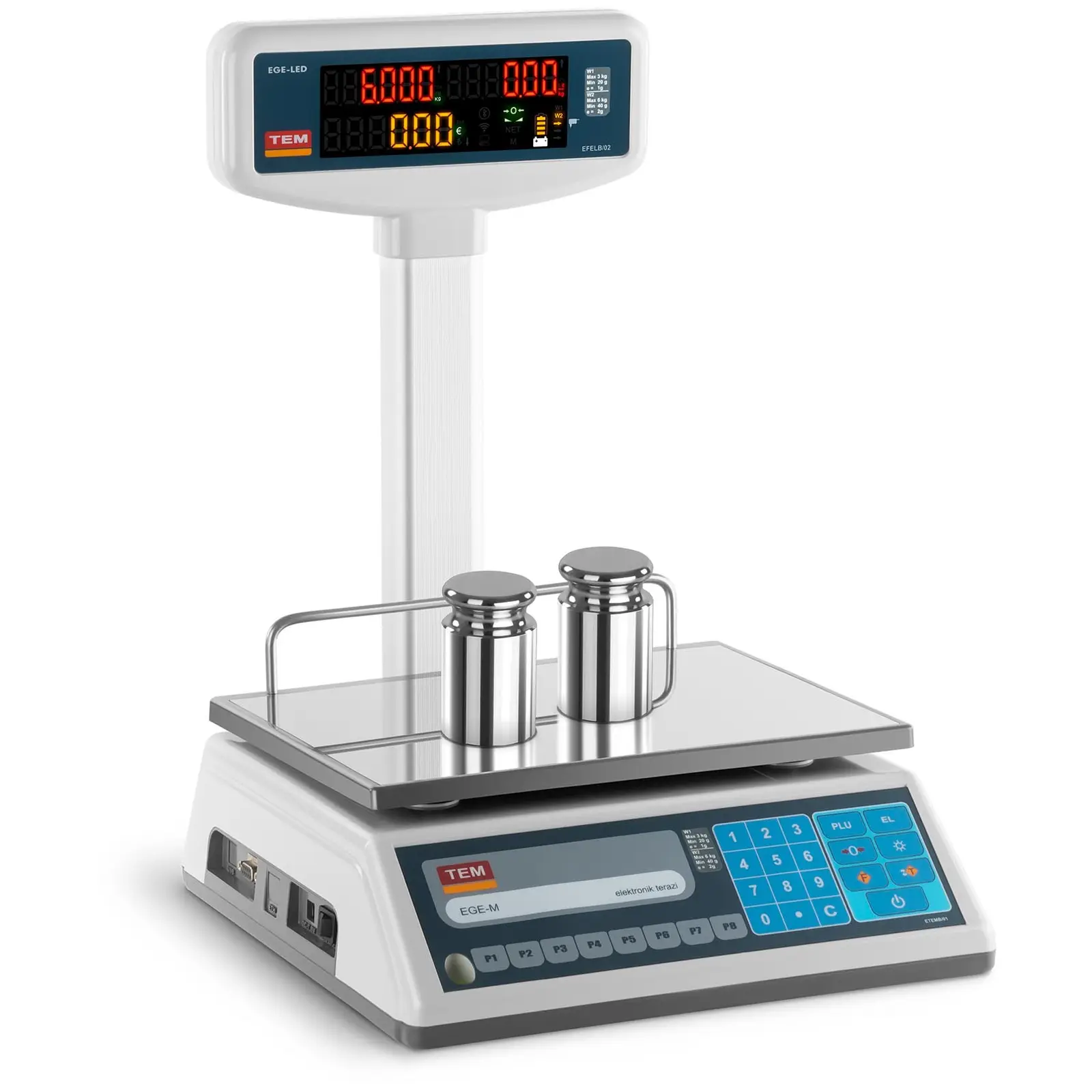 Cântarul electronic TEL006B1D-V2-B1 oferă rezultate de măsurare deosebit de precise, are o capacitate maximă de cântărire de 6 kg și o precizie de 2 g. Prin urmare, cântarul este ideal pentru magazine, farmacii, ceainării, industria alimentară sau în piețe și alte locuri în care trebuie verificată greutatea produsului. Cântarul a fost deja calibrat și este astfel aprobat pentru comercializare! Perioada de valabilitate a calibrării este de doi ani de la începerea funcționării. Gama TEM conține consumabile industriale de înaltă calitate și cântare precise pentru toate domeniile de aplicare.