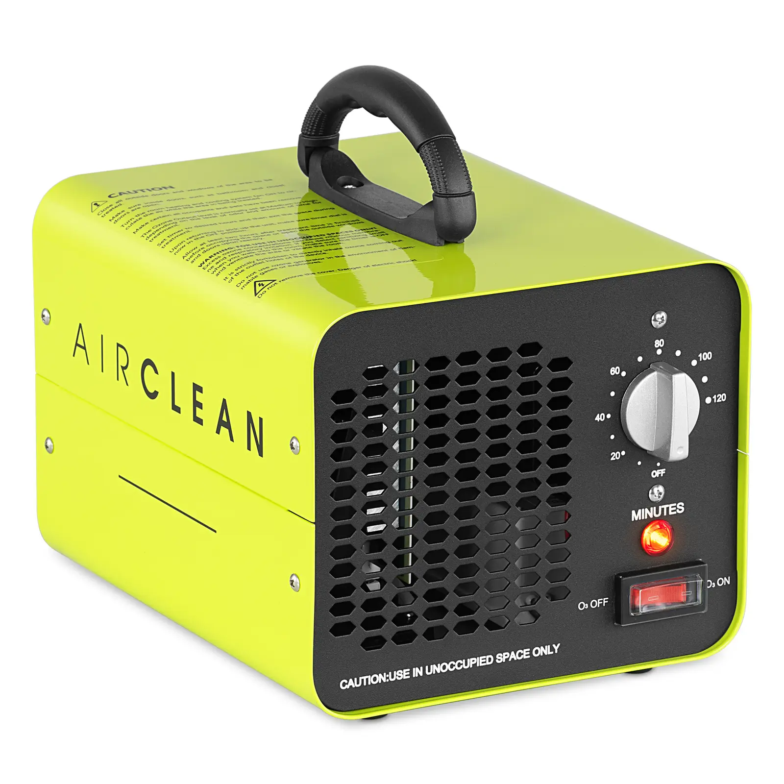 Sistemul de purificare a aerului produce ozon cu o rată de 10.000 mg pe oră, permițându-i să interzică rapid și eficient mirosurile neplăcute. Lampa UV integrată în generator garantează o producție constantă de ozon. Dispozitivul cu ozon funcționează cu trei moduri diferite. Ventilatorul și placa de ozon funcționează, iar indicatorul luminos este aprins. Dacă cronometrul este setat, dispozitivul este activat până la 120 de minute în funcție de timpul selectat. În modul Oprit, toate funcțiile sunt dezactivate.