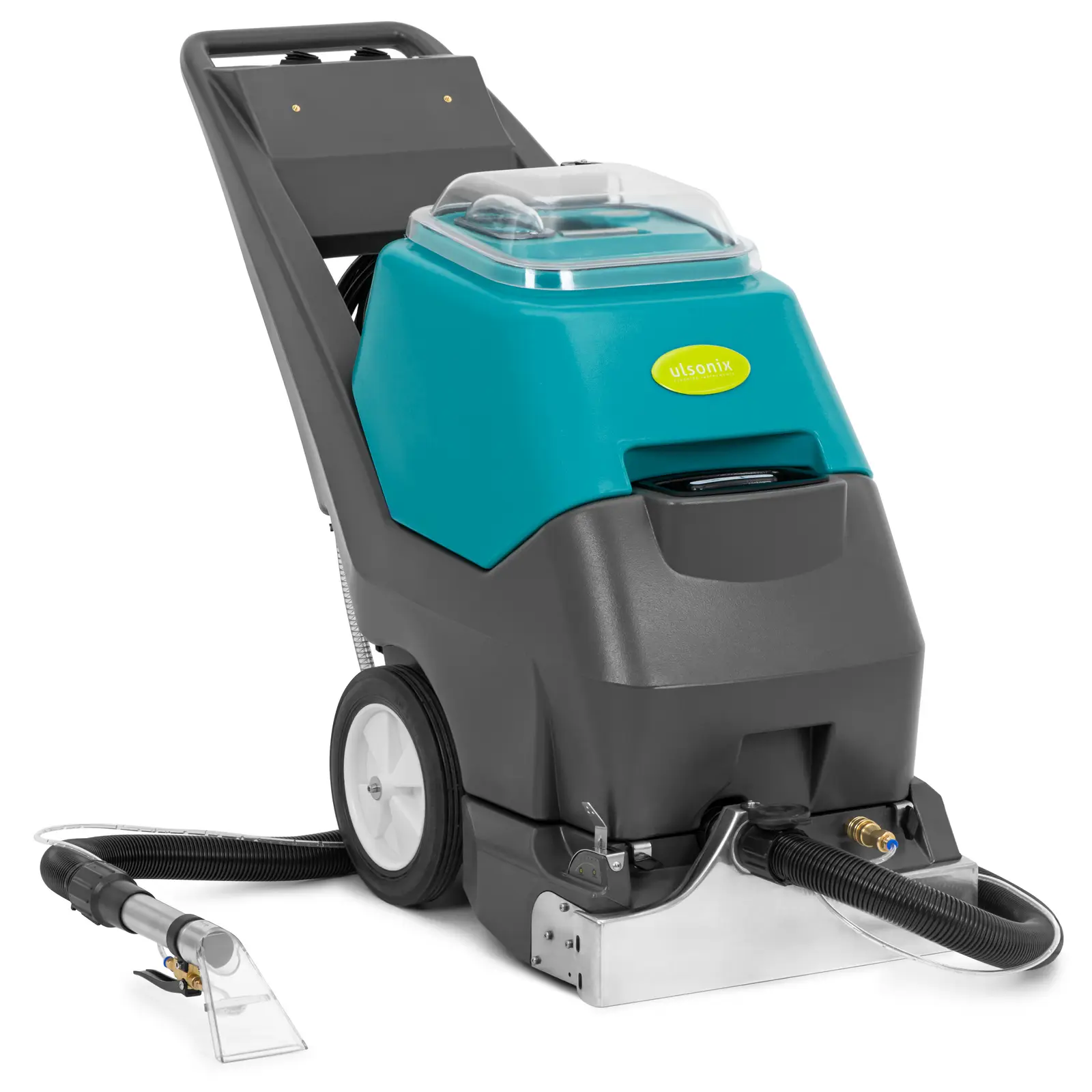 Mașina de curățat covoare ulsonix, cu o putere totală de 2500 W, combină tehnologii inovatoare pentru o curățare completă. Patru duze furnizează 30 psi (2 bar), asigurând o acoperire uniformă cu apă. În același timp, peria de 40 cm lățime, care funcționează la 1400 rpm, elimină murdăria, petele și mirosurile. Funcționând la 1400 W, zona de aspirație de 46 cm reduce eficient umiditatea la 4,06 psi (0,28 bar), accelerând uscarea. Capetele durabile din oțel inoxidabil asigură longevitate și performanță fiabilă. Pe lângă aceste caracteristici, mașina industrială de curățat covoare are o capacitate de lucru de 220 m²/h -, ceea ce o face ideală pentru aplicații pe scară largă în zonele rezidențiale și comerciale.
