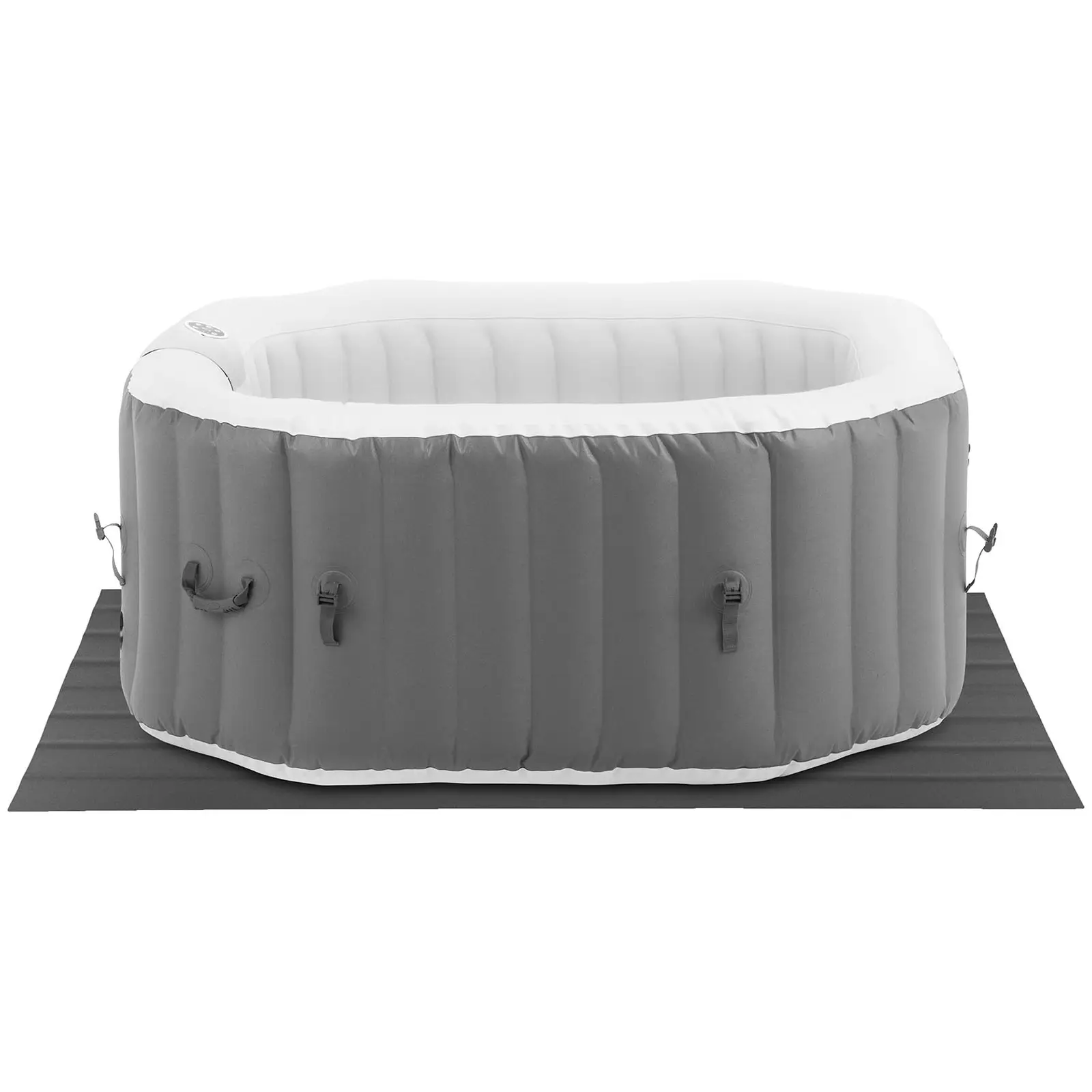 Mulțumită eficienței {{massage_air_blower_power_1406_temp}} W, pompa de aer, spa-ul este complet umflat și gata de umplere în câteva minute. Materialele de înaltă calitate și rezistente asigură o durabilitate deosebită a spa-ului gonflabil pentru utilizare în grădină și în interior. În plus față de capac, veți găsi în livrare o folie de sol care protejează piscina de deteriorare.
