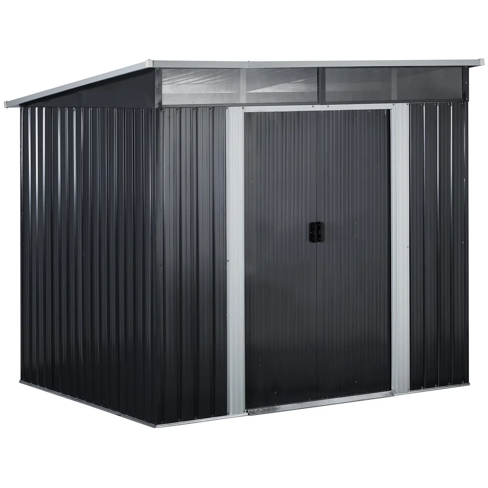 În magazia metalică pentru scule de la Uniprodo, puteți depozita uneltele de grădină, jucăriile de exterior și uneltele în condiții de siguranță și securitate. Cu dimensiunile de 260 x 195 x 202cm, magazia metalică pentru scule oferă suficient spațiu de depozitare chiar și pentru echipamente mai mari. Ușa glisantă dublă de 95 x 173 cm permite un acces simplu și poate fi blocată rapid și sigur cu ajutorul unei încuietoare cu zăvor.