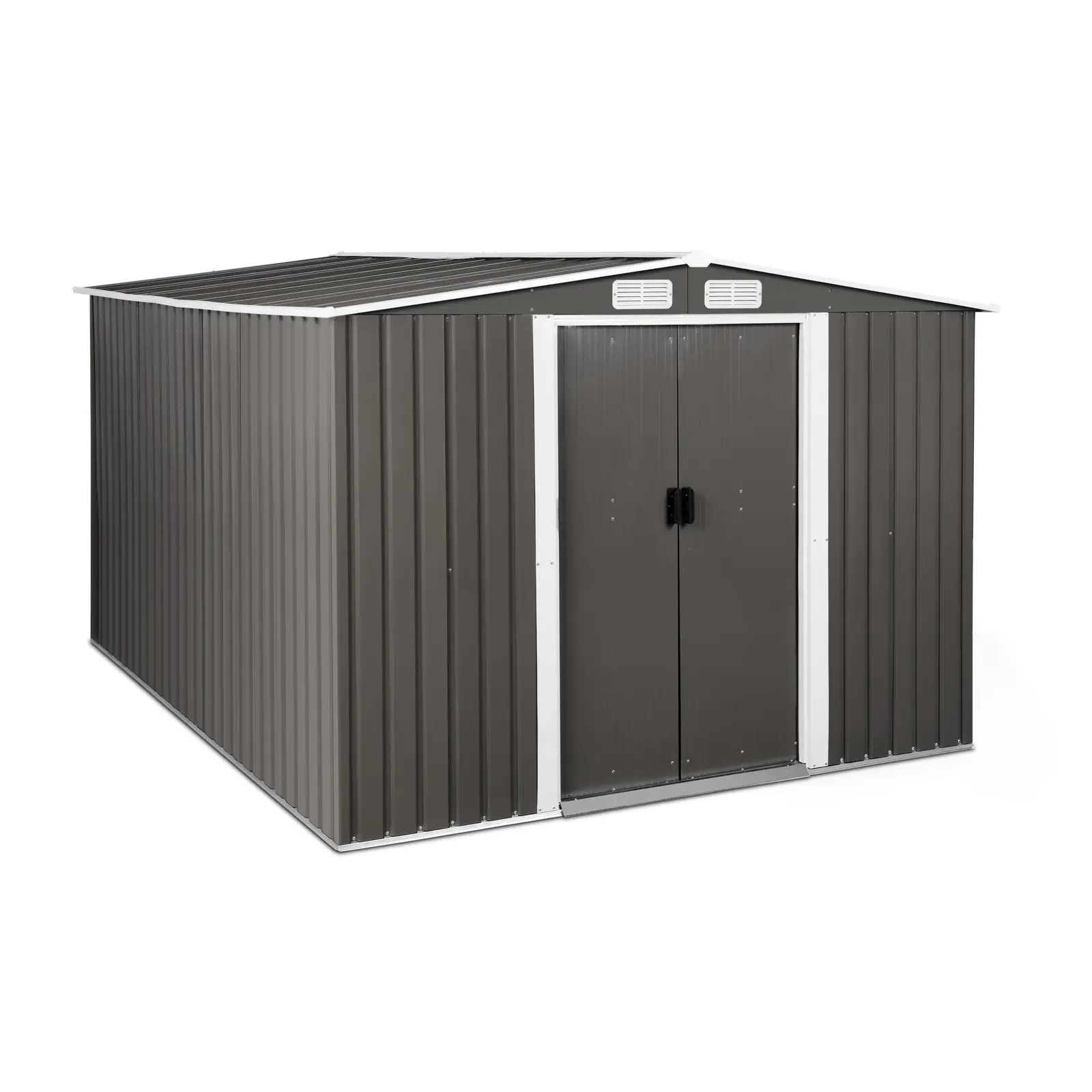 În magazia metalică pentru scule de la Uniprodo, puteți depozita în siguranță și în condiții de siguranță uneltele de grădină, jucăriile de exterior și sculele. Cu dimensiunile de 313 x 179 x 258 cm, magazia metalică pentru scule oferă suficient spațiu de depozitare pentru echipamente mai mari, cum ar fi mobilierul de grădină sau bicicletele. Ușa de 96 x 154 cm lățime x 154 cm înălțime permite accesul simplu și poate fi blocată rapid și sigur cu un lacăt.