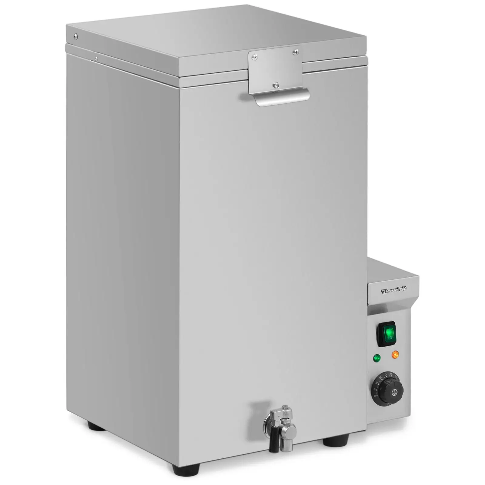 Sunt foarte mulțumit de noul meu cazan de 70 de litri. Deja la livrare am fost placut surprins. Cada era bine ambalată și chiar și un cadru de lemn în jurul cutiei pentru protecție suplimentară. Cada este de bună calitate și este chiar izolată, ceea ce nu apucasem să citesc în descriere - o altă surpriză pozitivă. Am sacrificat și opărit 25 de pui în serie de 4. și aici încălzitorul a putut să țină pasul și să mențină apa la temperatura setată. Cada era ușor de curățat.