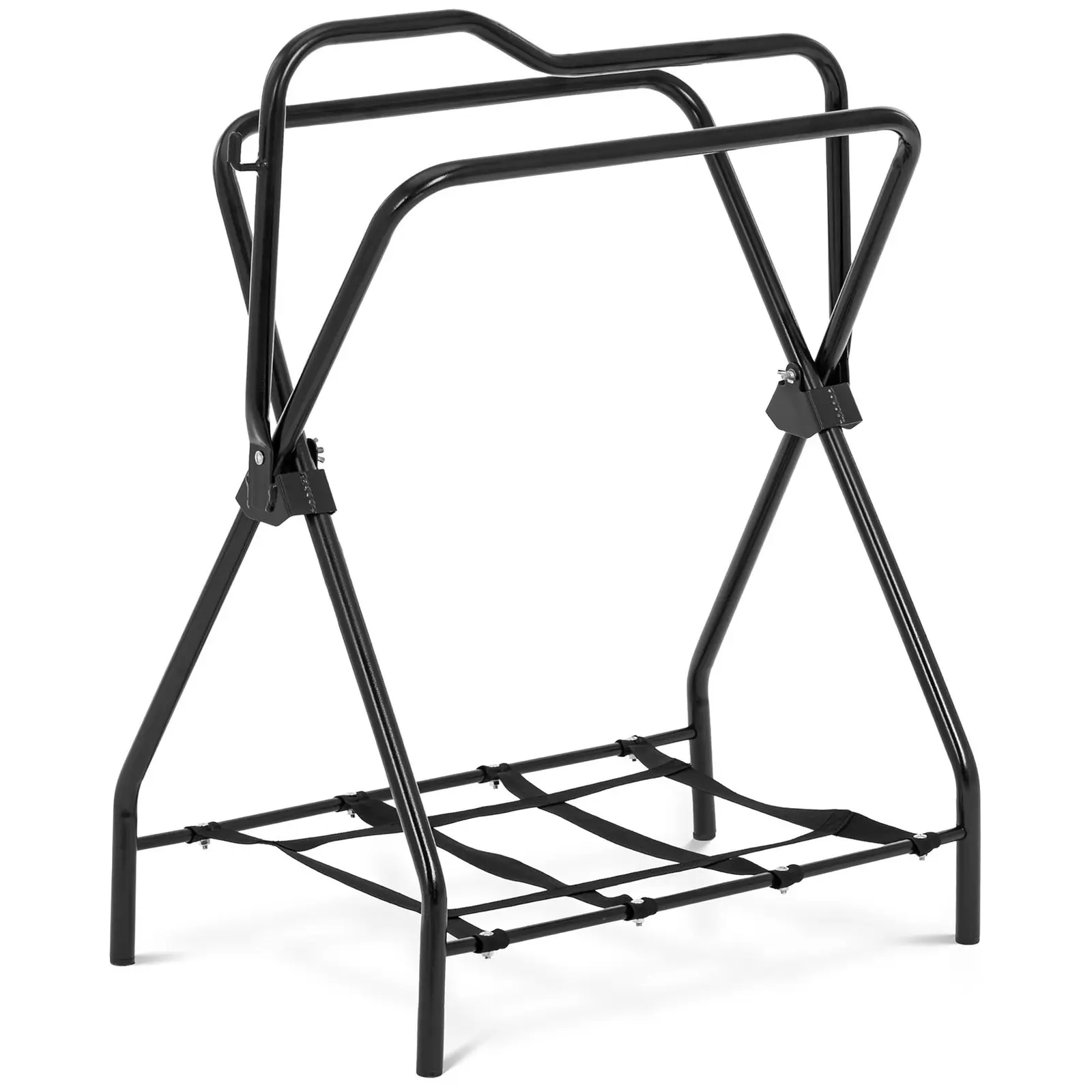 Suportul pentru șa este deosebit de potrivit pentru călătorii sau turnee, deoarece pur și simplu pliați cadrul pentru transport. Astfel, este ușor de transportat și se poate depozita rapid în spații mici datorită dimensiunii înguste a pachetului.