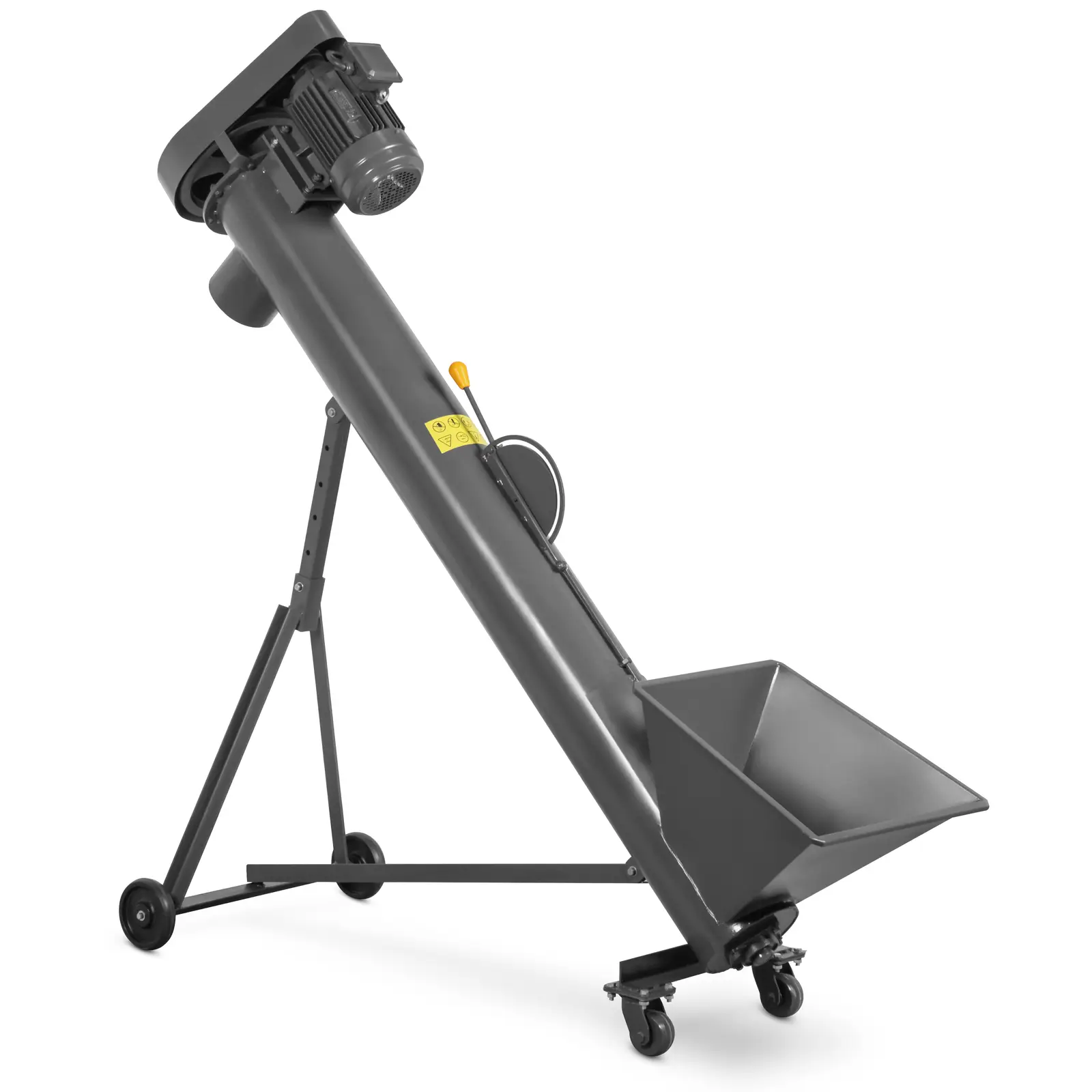 Pentru cereale, așchii de lemn sau pelete: transportorul cu șurub Wiesenfield transportă eficient până la 1000 kg de material în vrac cu curgere liberă pe oră. Transportatorul de peleți premium livrează fără probleme materia primă într-o presă de peleți sau alte utilaje, gestionând diferențe de înălțime de până la 1,4 m. Transportatorul cu șurub este deosebit de potrivit pentru spațiile înguste datorită performanței sale eficiente și dimensiunilor compacte. Aparatul este montat pe un cadru robust cu patru roți, astfel încât să îl puteți împinge cu ușurință la locul de utilizare.